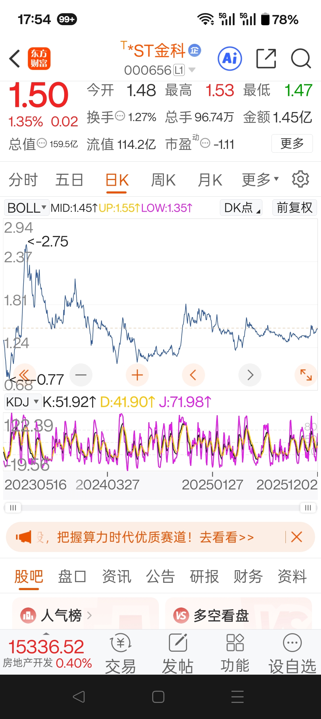$*ST金科(SZ000656)$ 这一波拉升1.66目标。明天横盘半天。