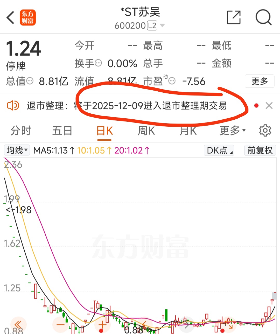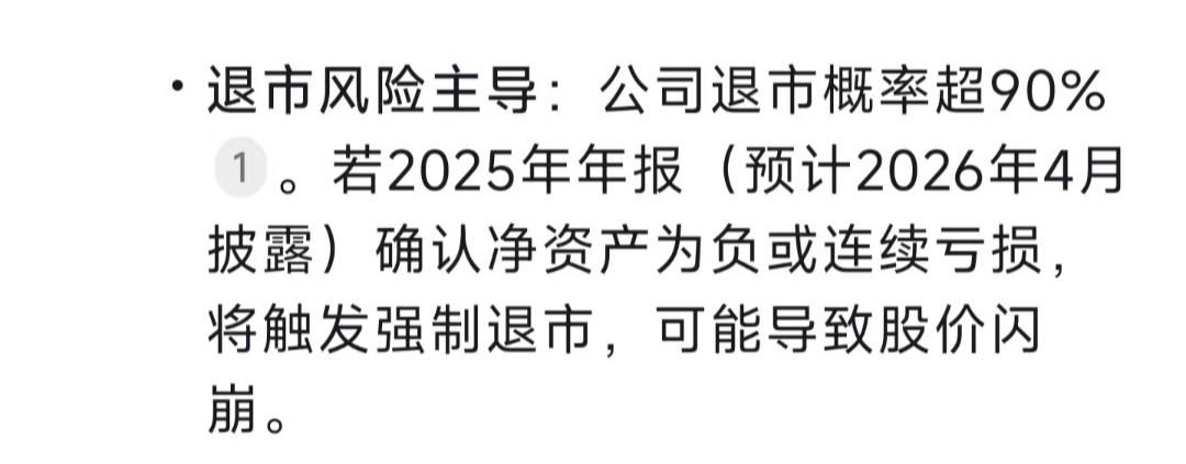 到时候直接宣布停牌进入退市整理期,退市边缘危险股,千万小心出不来,像苏吴一样