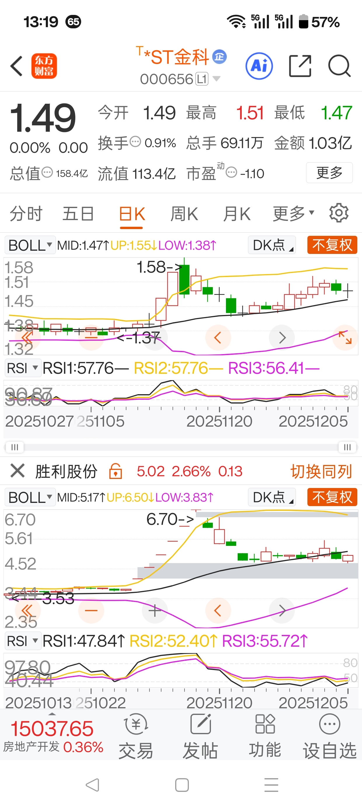 $*ST金科(SZ000656)$ 金科站在了中轨线上方了。强势