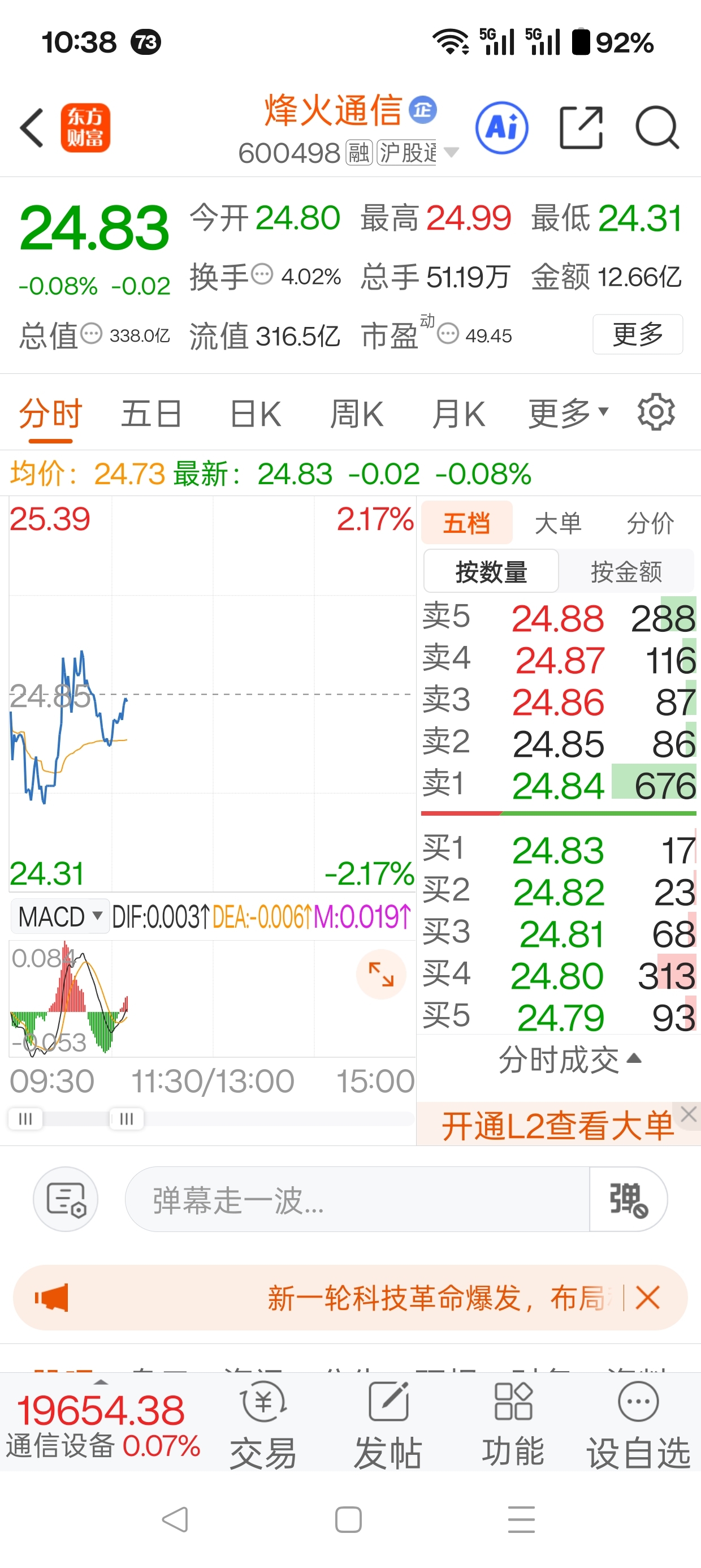 买入机会来了,烽火通信。明天大涨股。看不准尾市买。