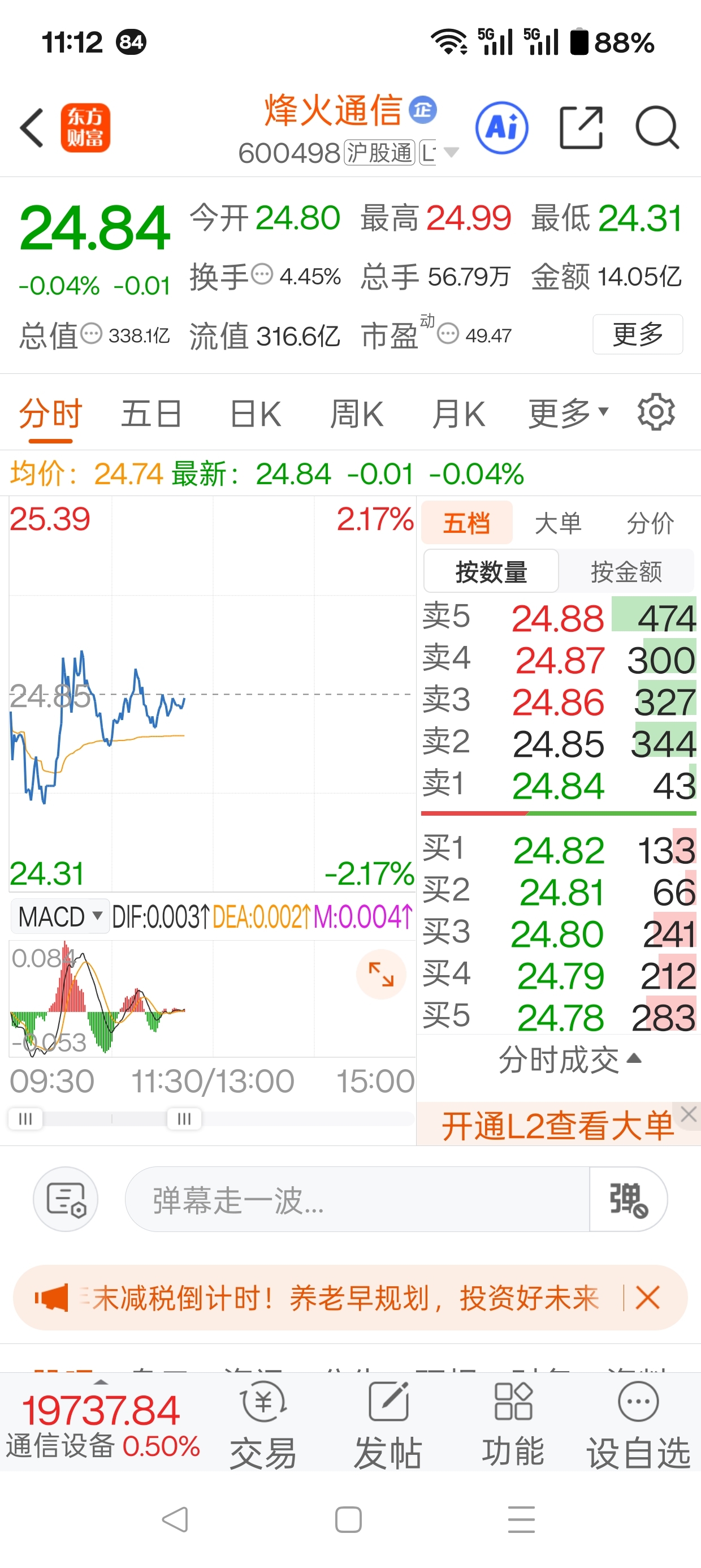 $*ST金科(SZ000656)$ 通知,买入烽火通信24.85