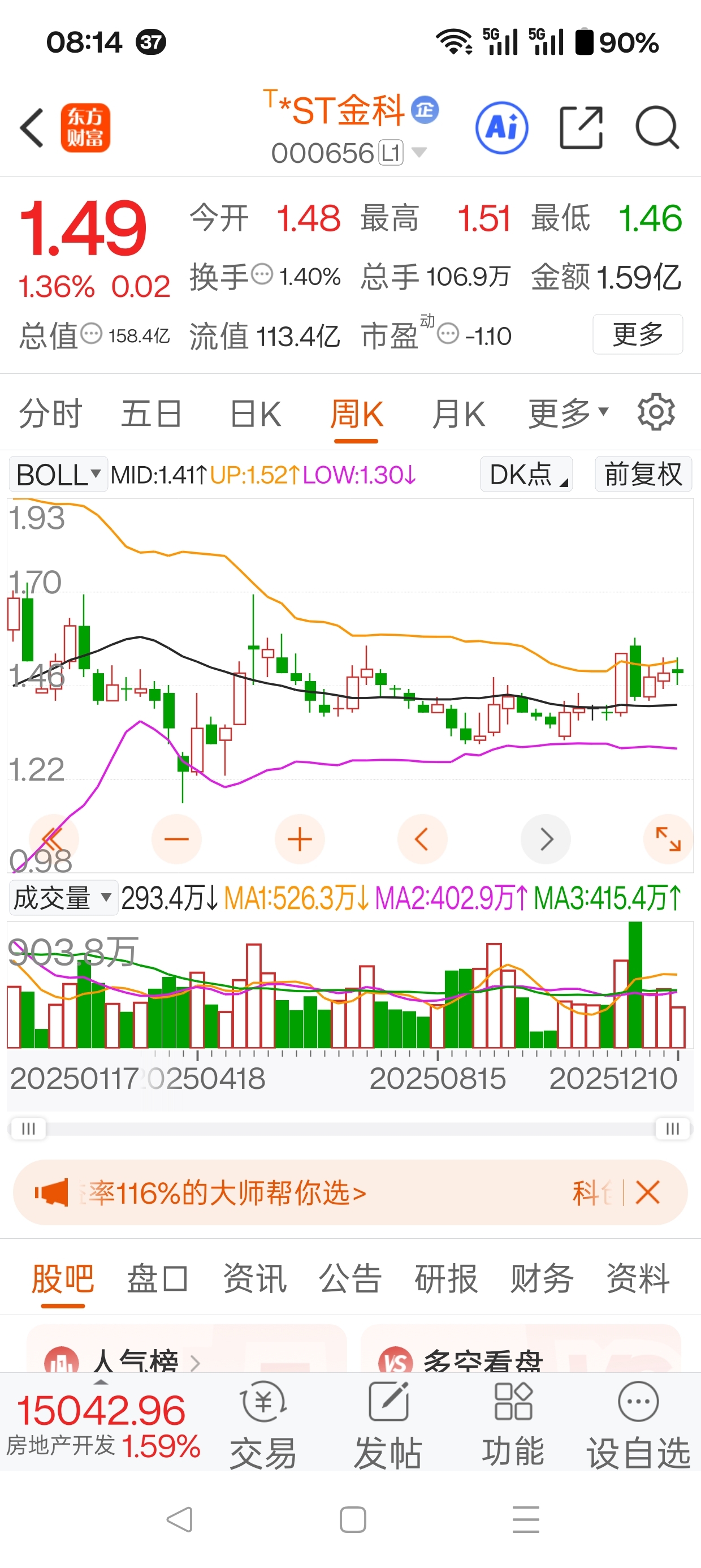 $*ST金科(SZ000656)$ 两个月一次行情,都发生在单月。十一月金科涨过了头,十二月调整。预计20起见底,开始上行。