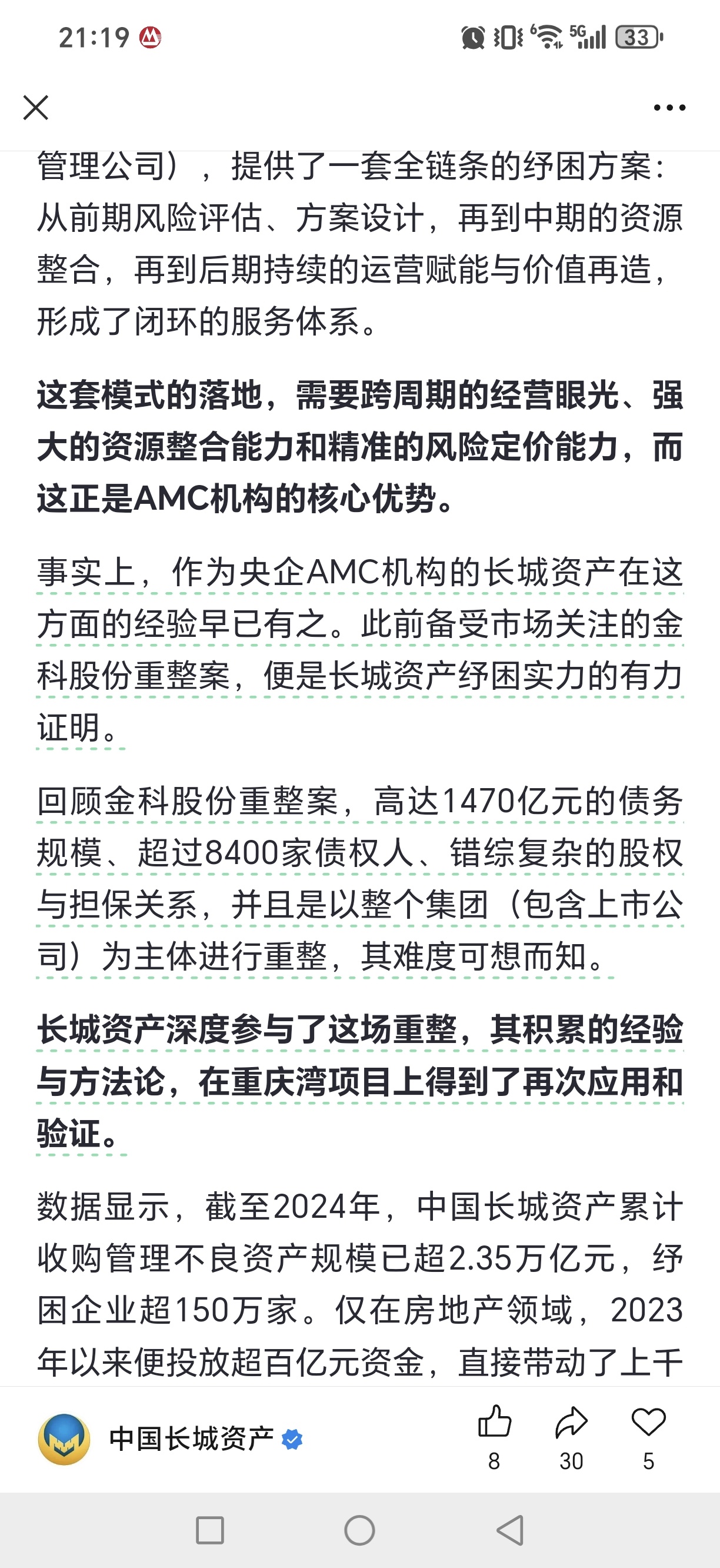 $*ST金科(SZ000656)$ 长城资产把金科股份重整重点标注了,长城资产这么卖力宣传,金科对得起人家吗!