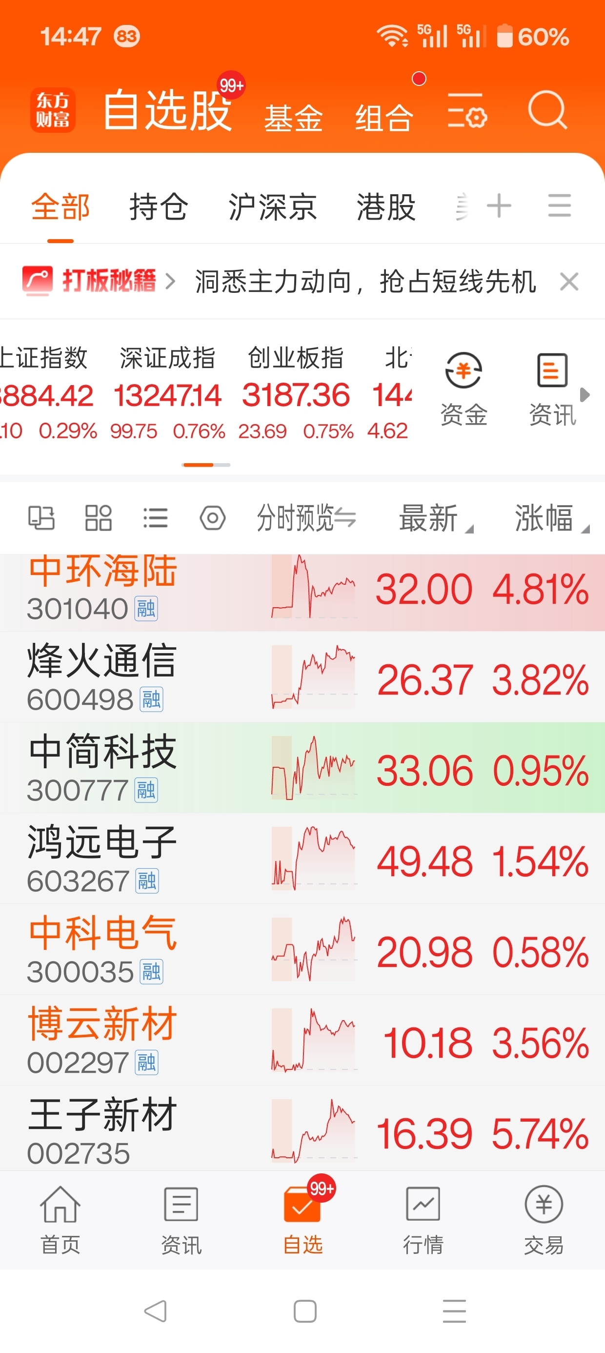 对比一下中午股价和收盘。昨天说的挑一个买入。最好的是中环海陆和王子新材。