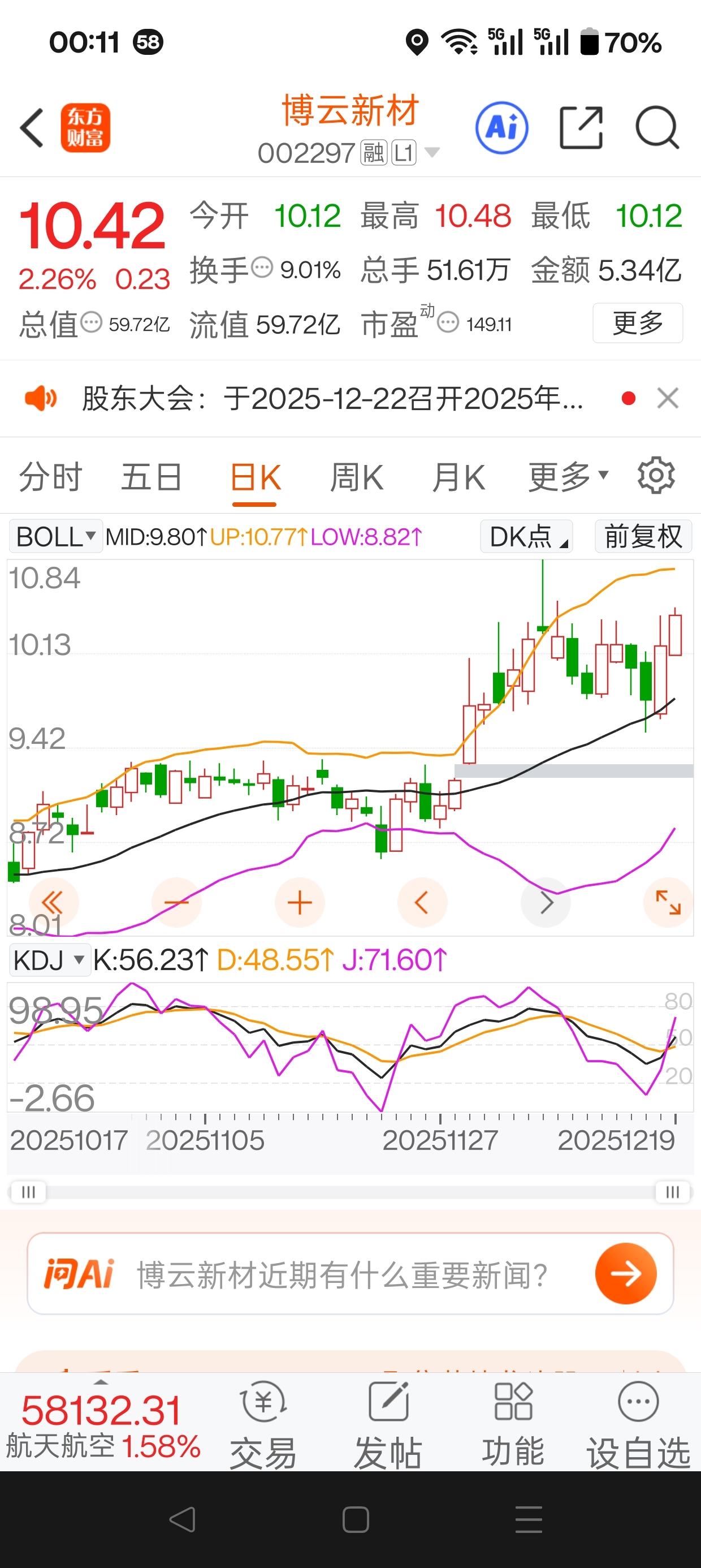 $*ST金科(SZ000656)$ 这是航天板块的。周四可以用一百股金科换15股博云新材。下周呢?15股博云新材换回来110股金科。金科就做锚锭。