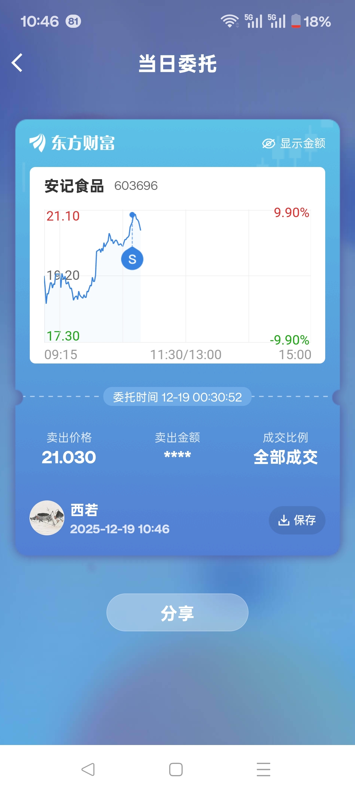 问题是周五卖出了安记食品。