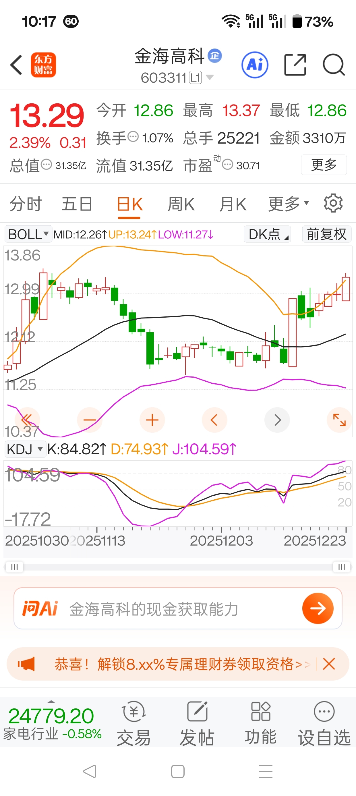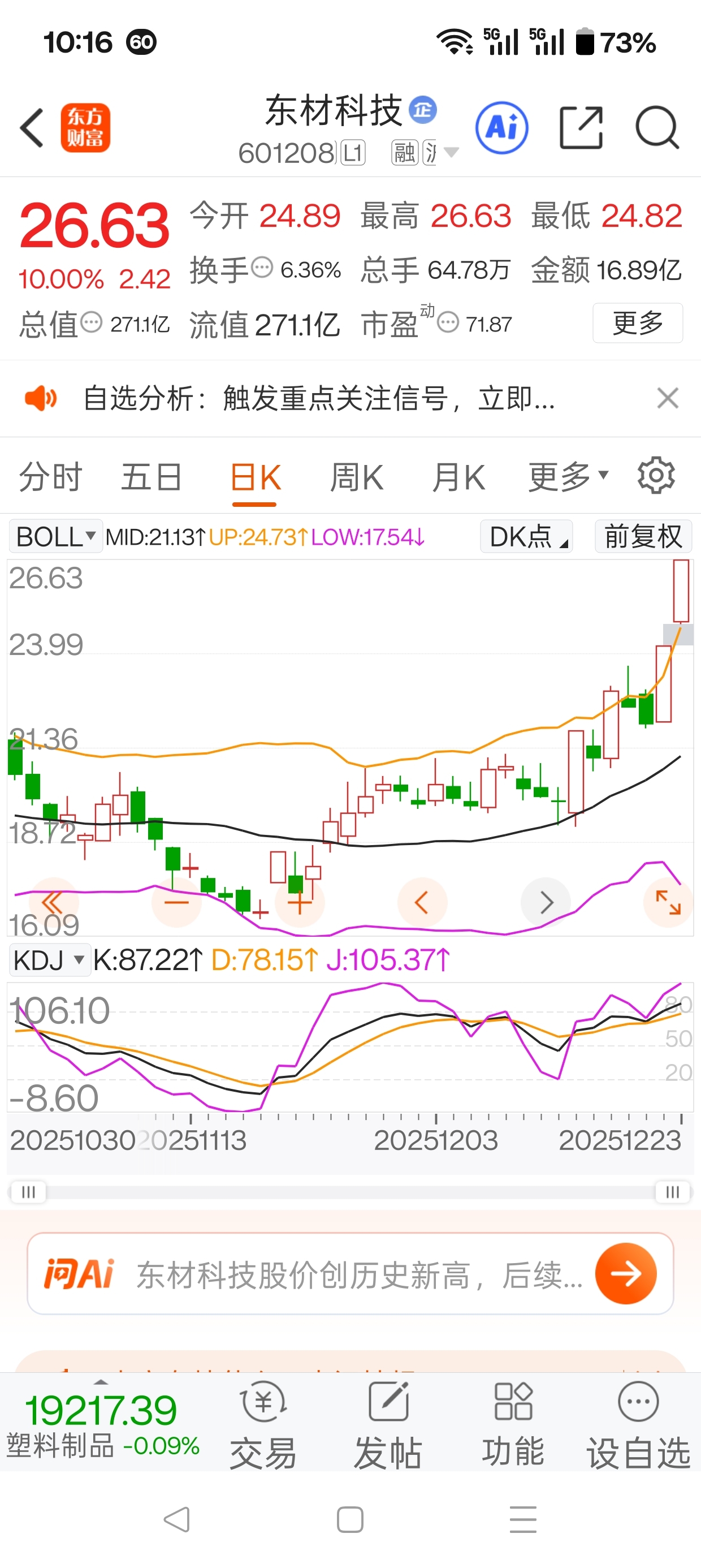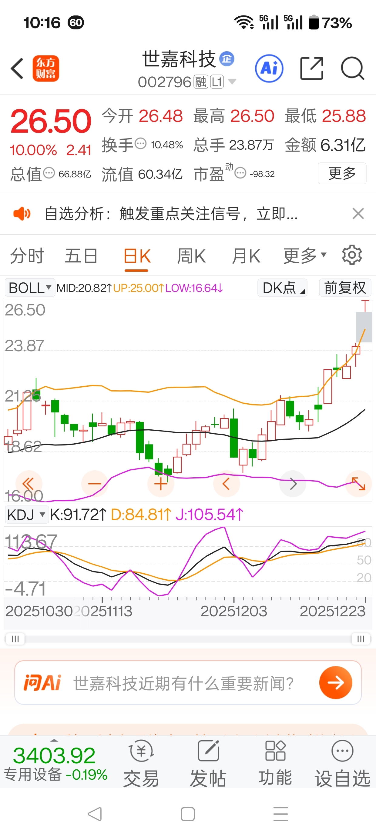 $*ST金科(SZ000656)$ 奇了怪了,你们怎么盯着金科不放呢?好股票辣么多?我这里随便买捡一个买卖都行啊?都是上升趋势的。差一点的博云新材天赐材料也好的啊。喜欢买下跌股票的朋友,今天可以潜伏的有比如雪人集团安正时尚汇嘉时代胜利股份,等等,等等。金科就是一个跳板,偶尔来客串一下避避热门股的调整风头,那是可以的啊。