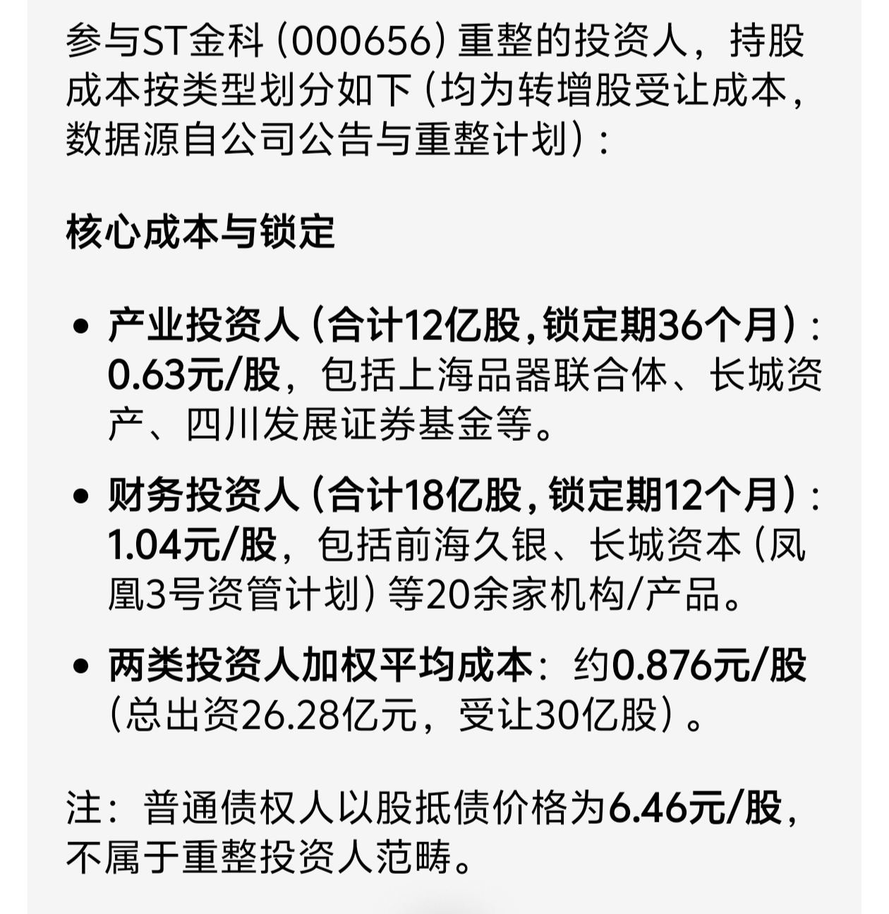 目前金科价格贵吗?债权人6.46成本,财务投资人1.04,产业投资人0.63(控股股东不会减持),自己想想吧,还马丁什么?格局小了吧?