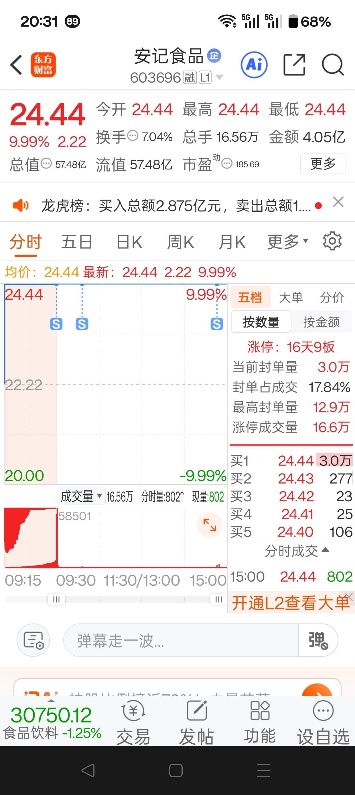 靠,昨天卖出安记食品,今天就涨停了。今天卖出博云新材,盘中就涨停了。看来我不卖出