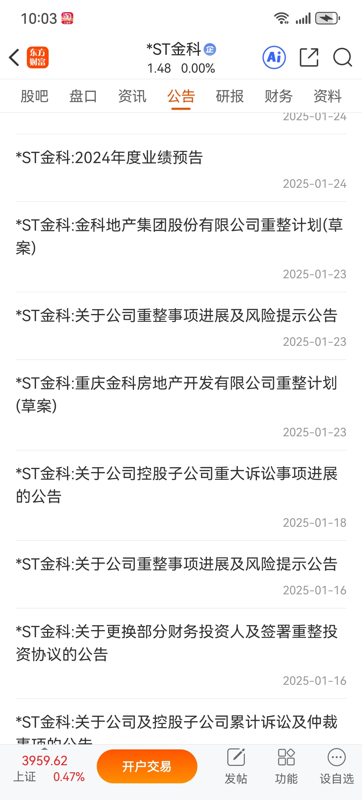 $*ST金科(SZ000656)$ 金科去年年报预告是今年1月24,今年估计会早一些,看看能不能在1月15号左右出来。