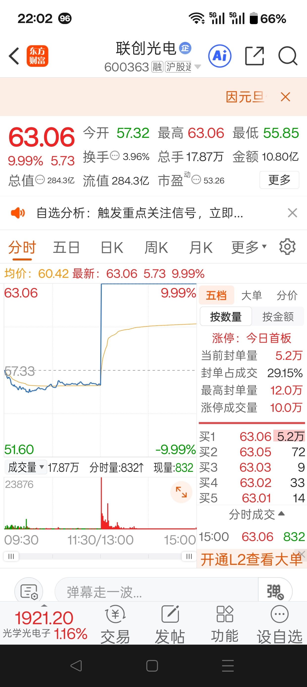 水下直接拉涨停的股票,第一次玩,跟踪。