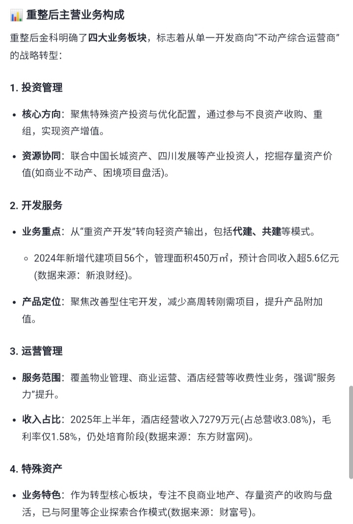 转发:*ST金科重整后转型业务目前情况