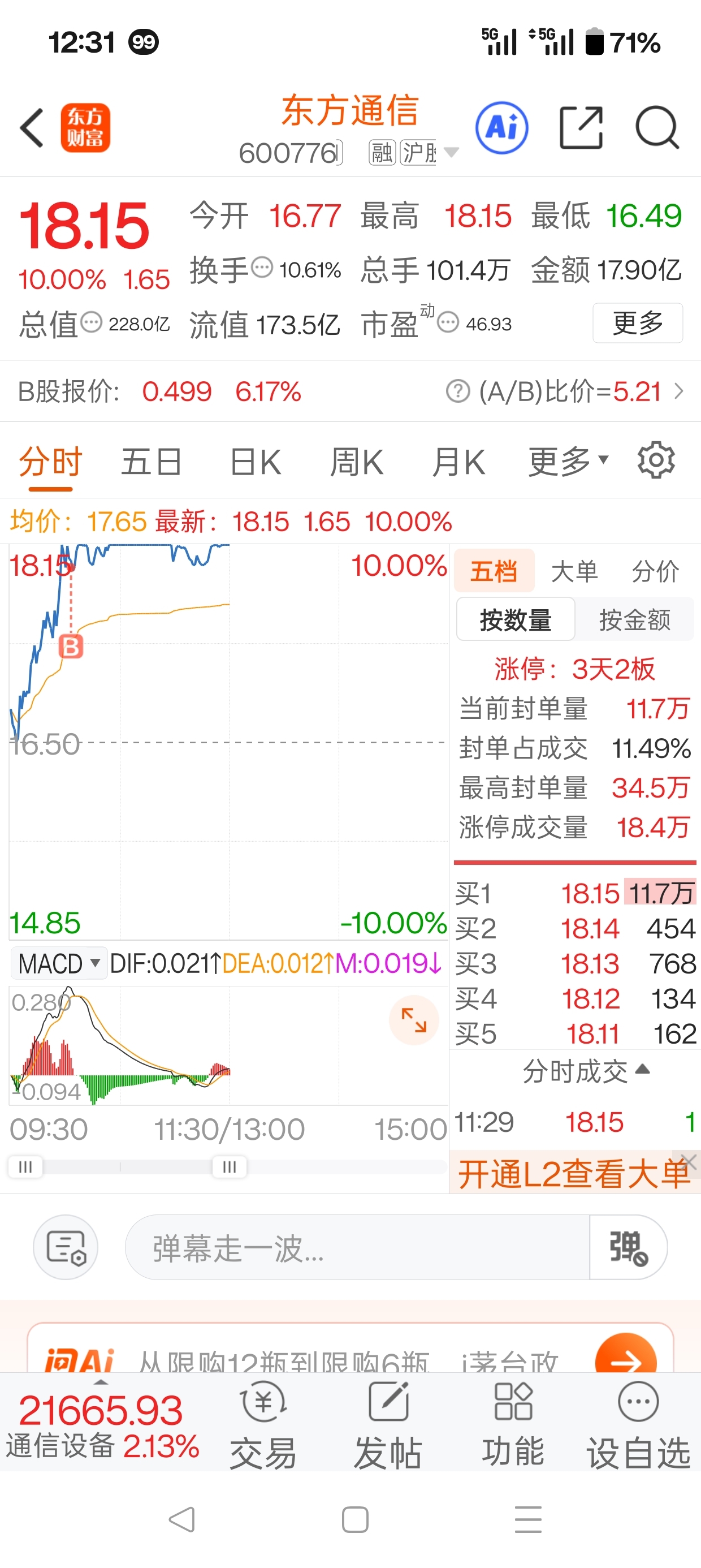 $*ST金科(SZ000656)$ 明天会不会涨停,我怎么知道?东方通信