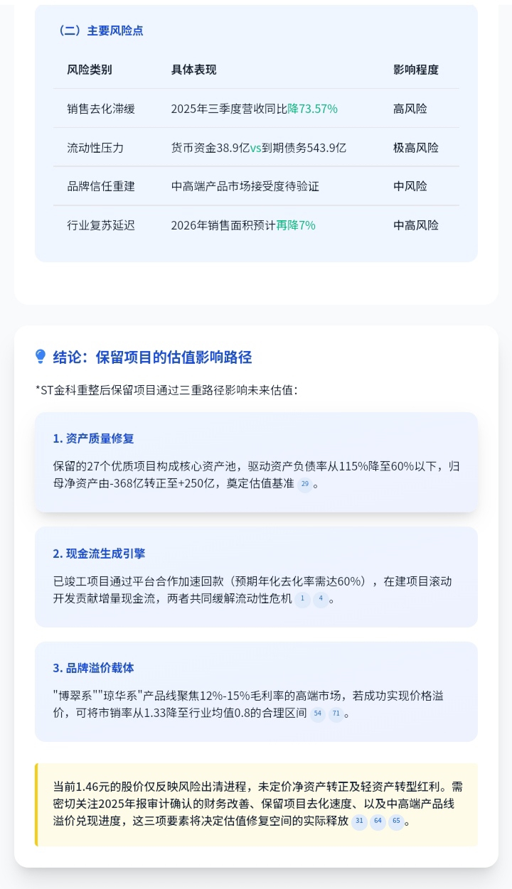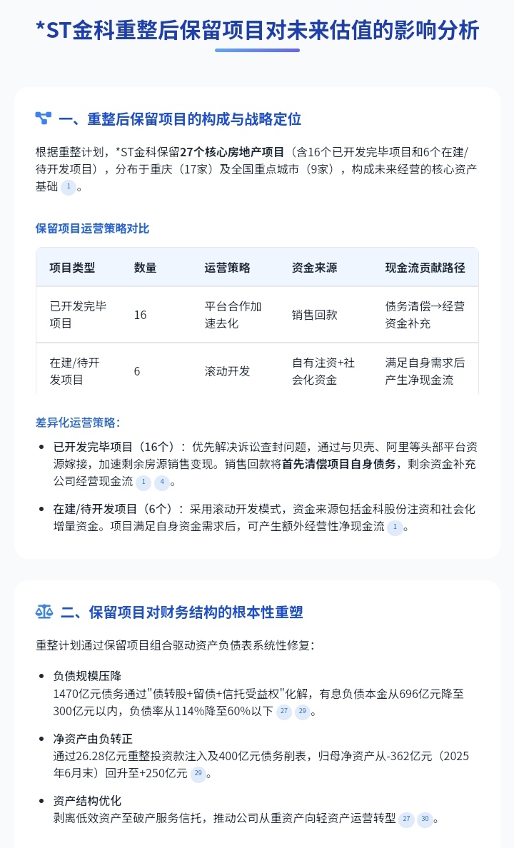 转发:*ST金科重整后保留项目对未来估值影响分析