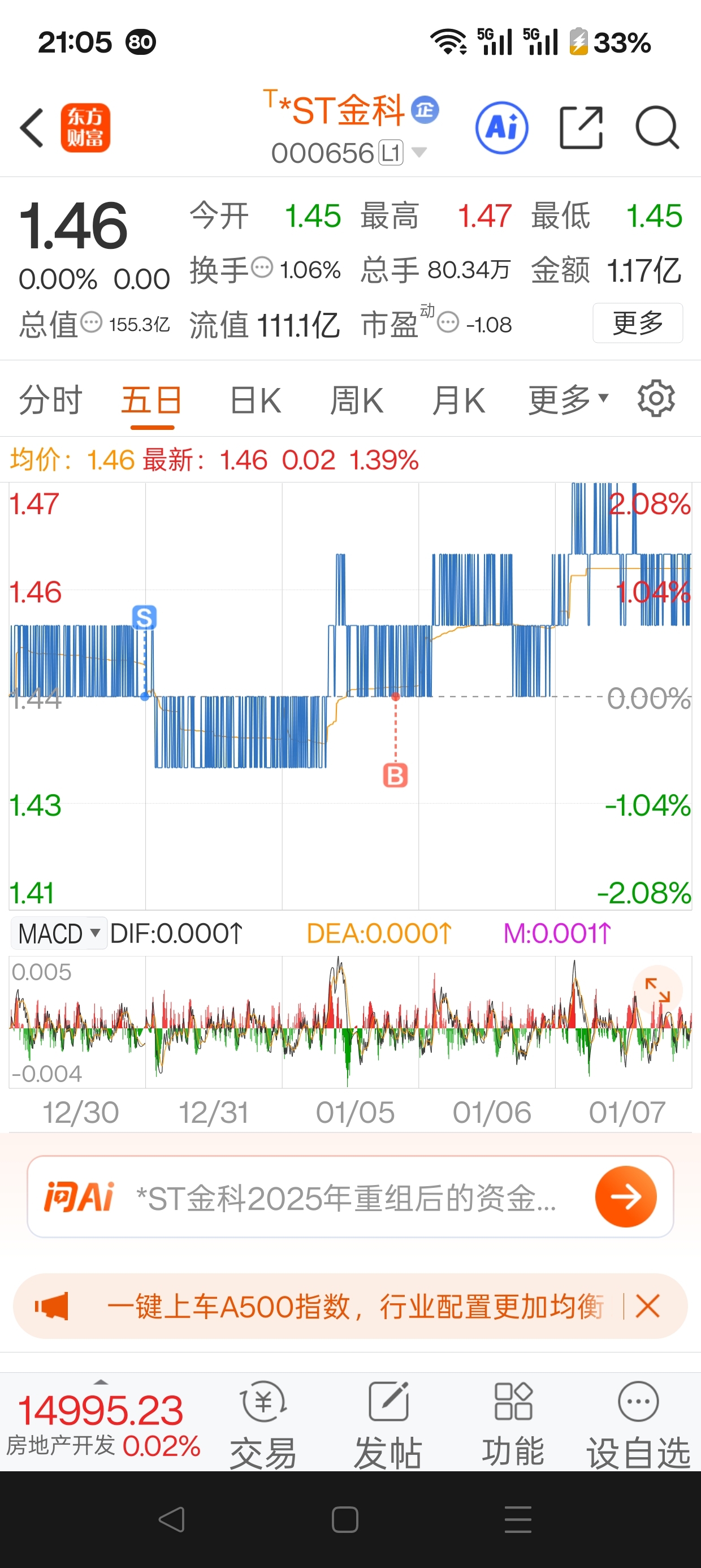 还有谁?怀疑金科这周要涨的?谁?出来走两步?天天喊你买入,1.43喊你买,1.4