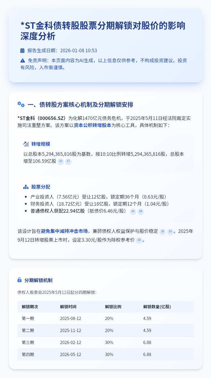 转发:*ST金科债转股股票分期解锁对股价的影响深度分析