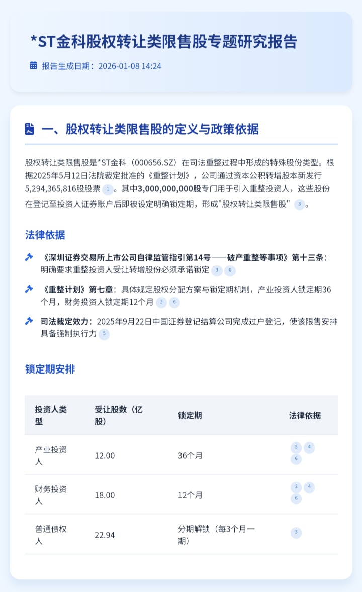 转发:*ST金科股权转让类限售股专题研究报告