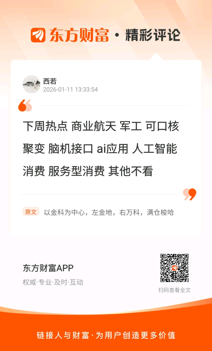 /你这老太婆坏的很,网罗了大批糟老,,,头子为你服务,名其名曰团队。追热点?一个回撤套着了我将失去真正的风口,地产只会迟到不会缺席@西若 :下周热点 商业航天 军工 可口核聚变 脑机接口 ai应用 人工智能 消费 服务型消费 其他不看