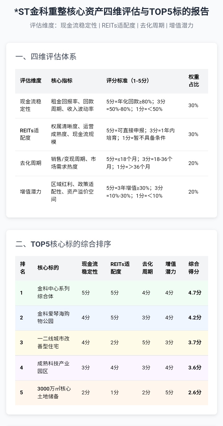 转发:*ST金科重整核心资产四维评估与TOP5标的报告