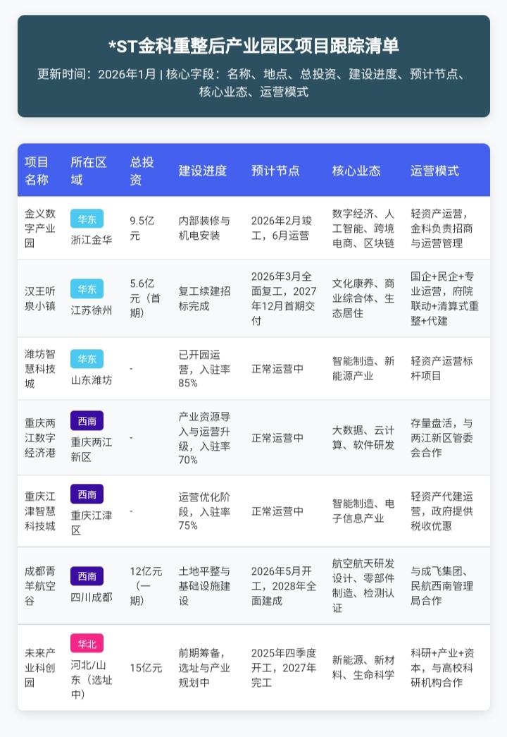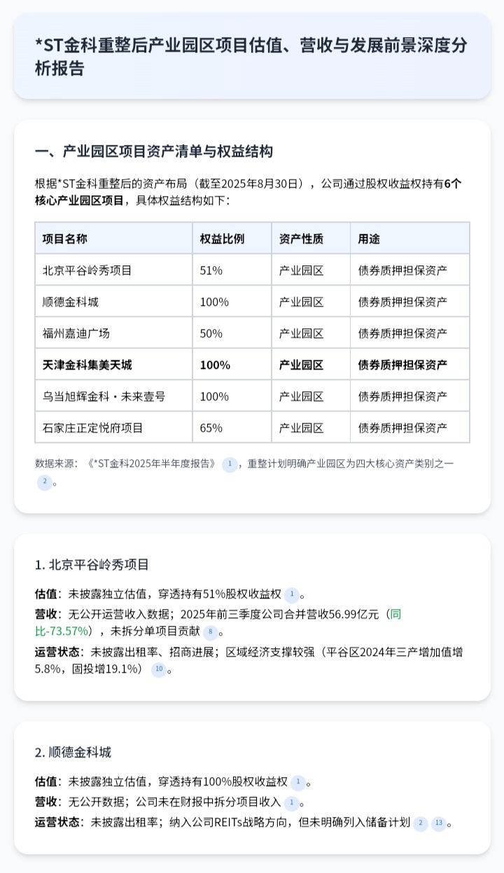 转发:*ST金科重整后产业园区项目估值、营收与发展前景深度分析报告