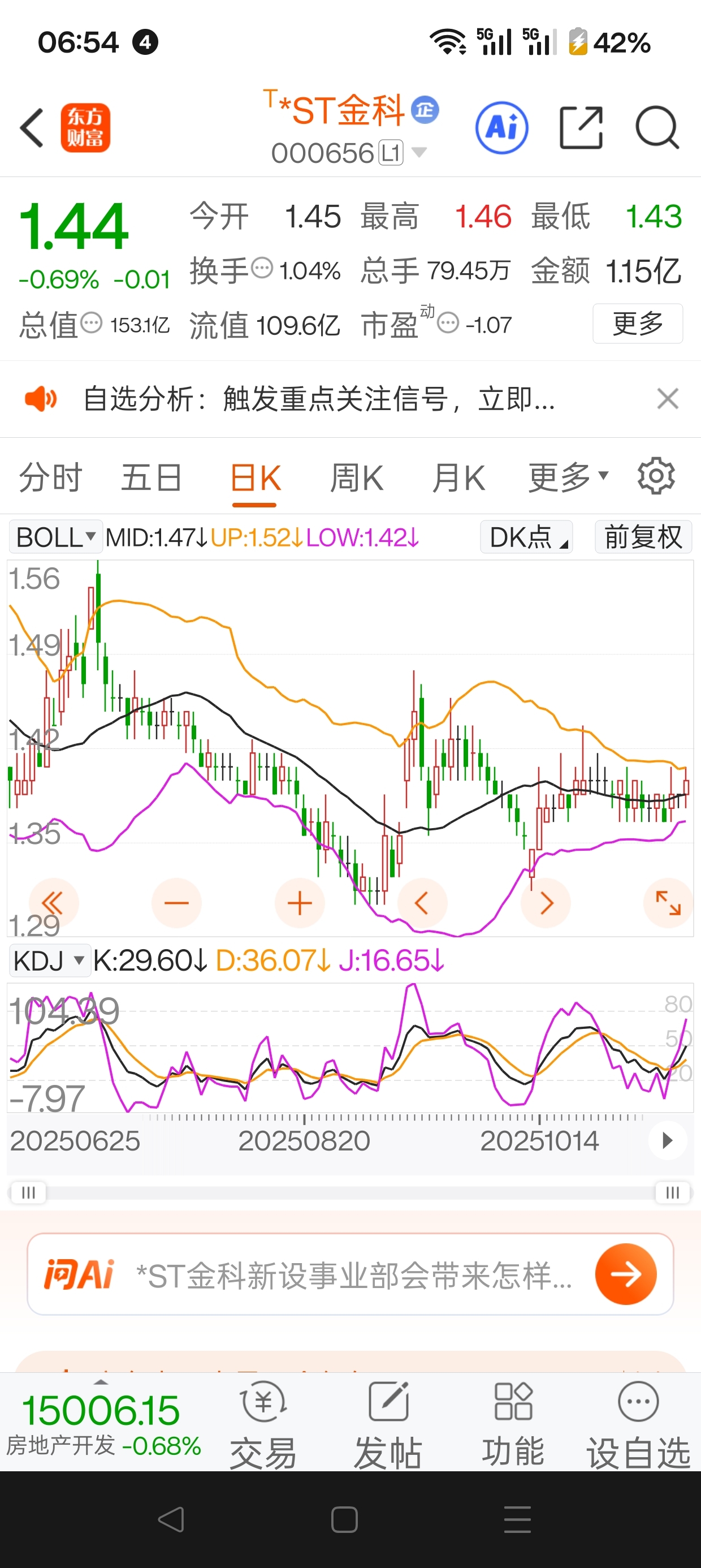 $*ST金科(SZ000656)$ 金科的底部在逐步抬高,上次做了了个双底,看图,然后反弹到了1.55,左边的底是1.31,右边的底经过六根下跌阴线,到了1.32形成双底。这次呢?