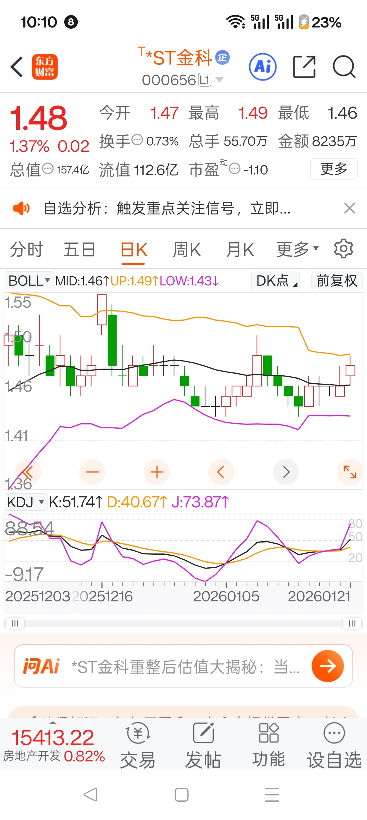 $*ST金科(SZ000656)$ 金科,今天股价摸到了上轨线,再横盘一天,布林线就会走平,即将大涨。起涨点,我来买。