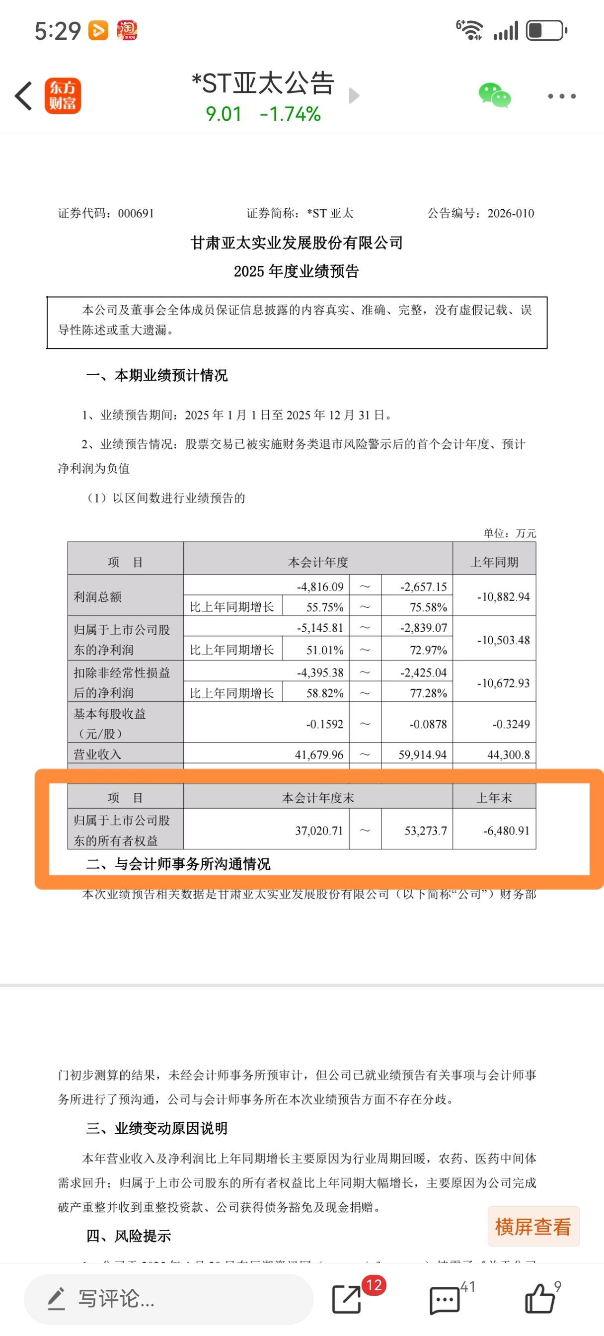 ST亚太年报预告已经出来,业绩亏损,净资产转正,已经上岸。后面东易,金科也快了。