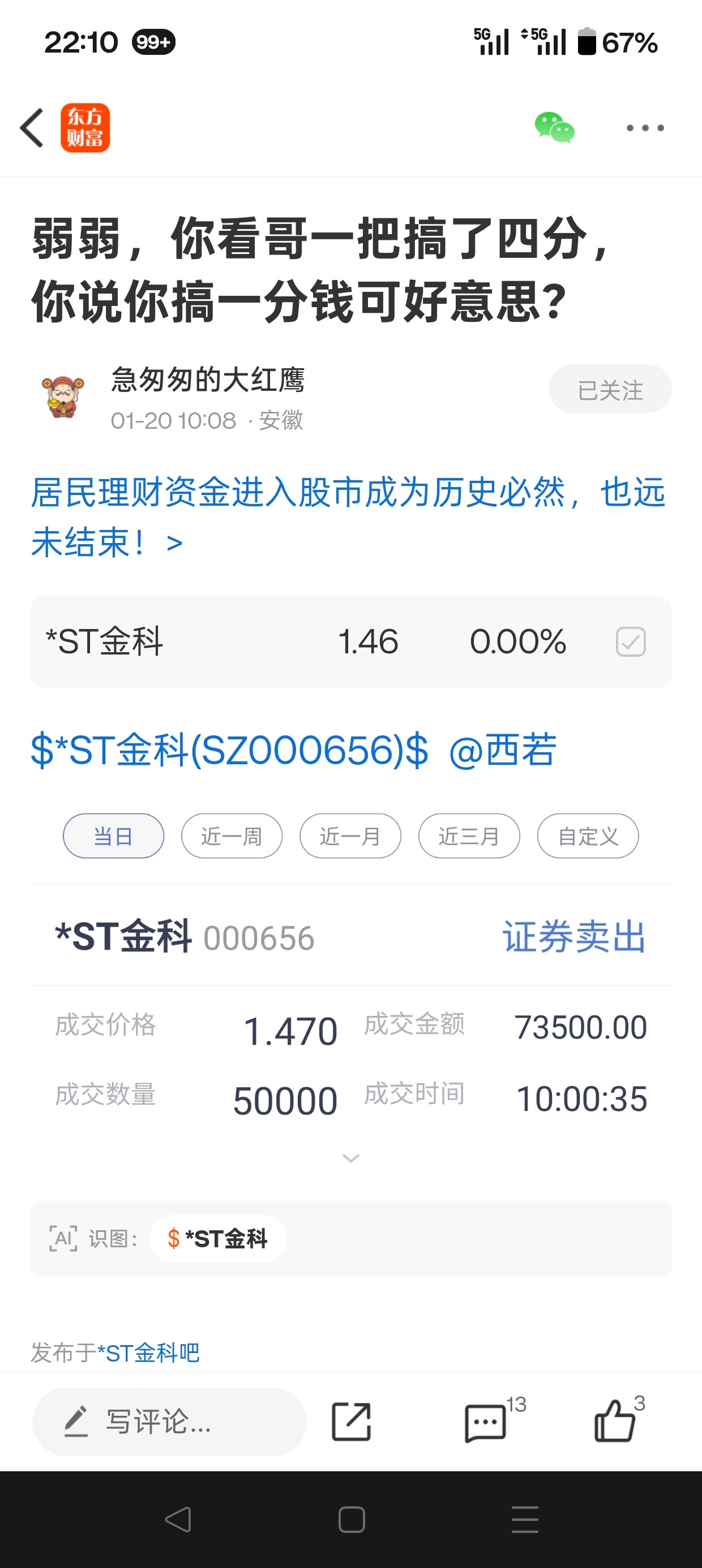 $*ST金科(SZ000656)$ 赚四分钱也是不简单的事啊