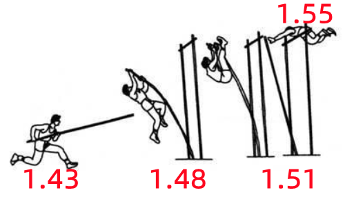 运动员认真复盘,W双底1.43跑道没问题,动作没问题,不去更多考虑,把精力放在起跳点1.48,今日表现量能有,可以加力投入,把1.47作为助跑线放在心里,有利于越杆动作发挥。