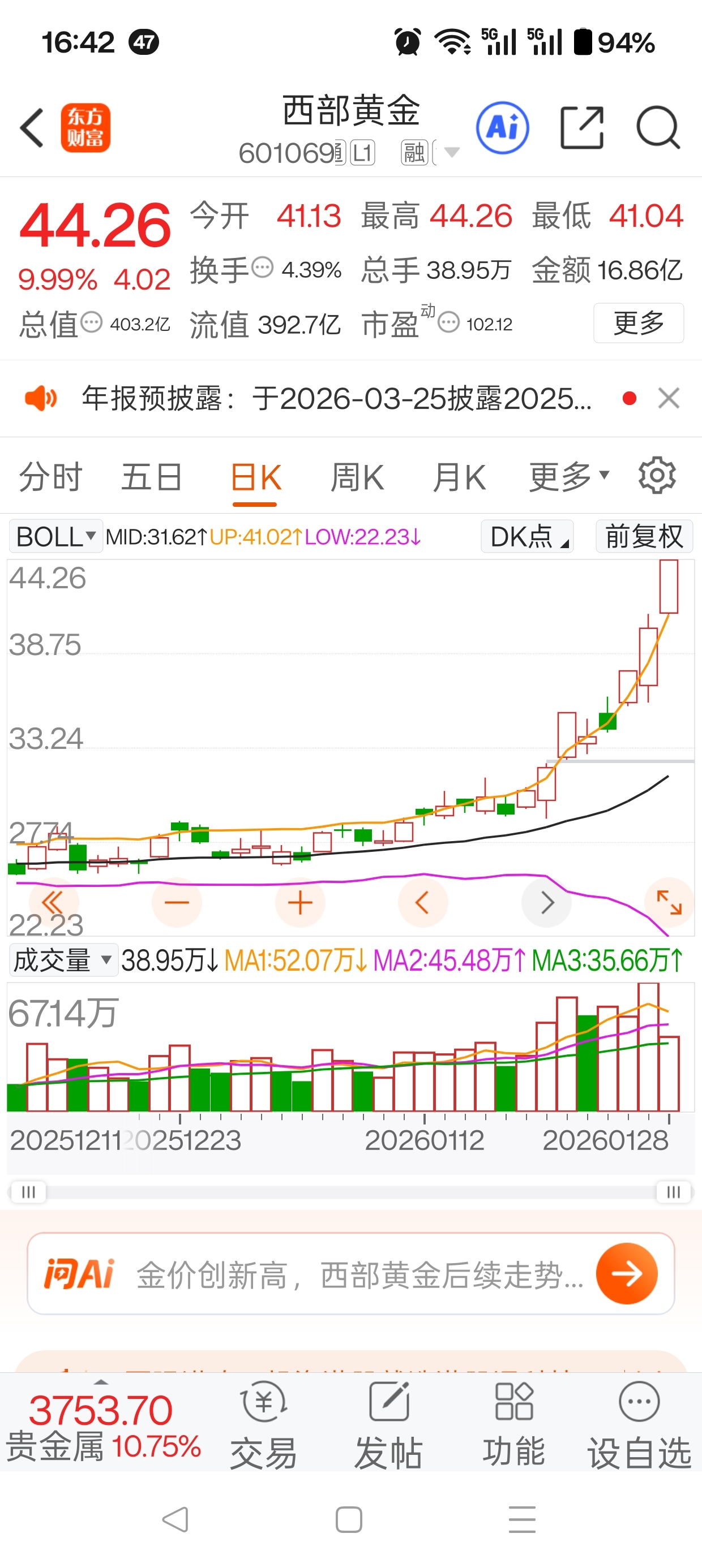 $*ST金科(SZ000656)$ 今天没有参与有色黄金白银板块,实乃人生一大憾事啊。