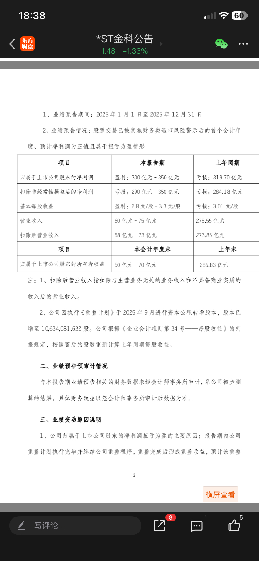 $*ST金科(SZ000656)$ 每股净利润2.8元到3.3