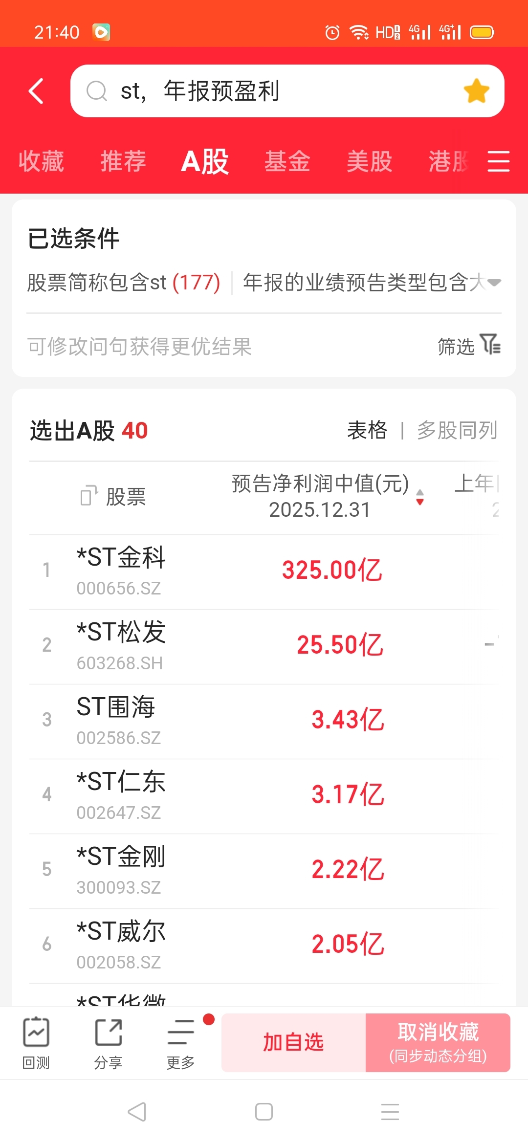 净资产为正,营业额大于三亿,利润三百多亿,妥妥的准摘帽股!目前金科在年报预盈利中