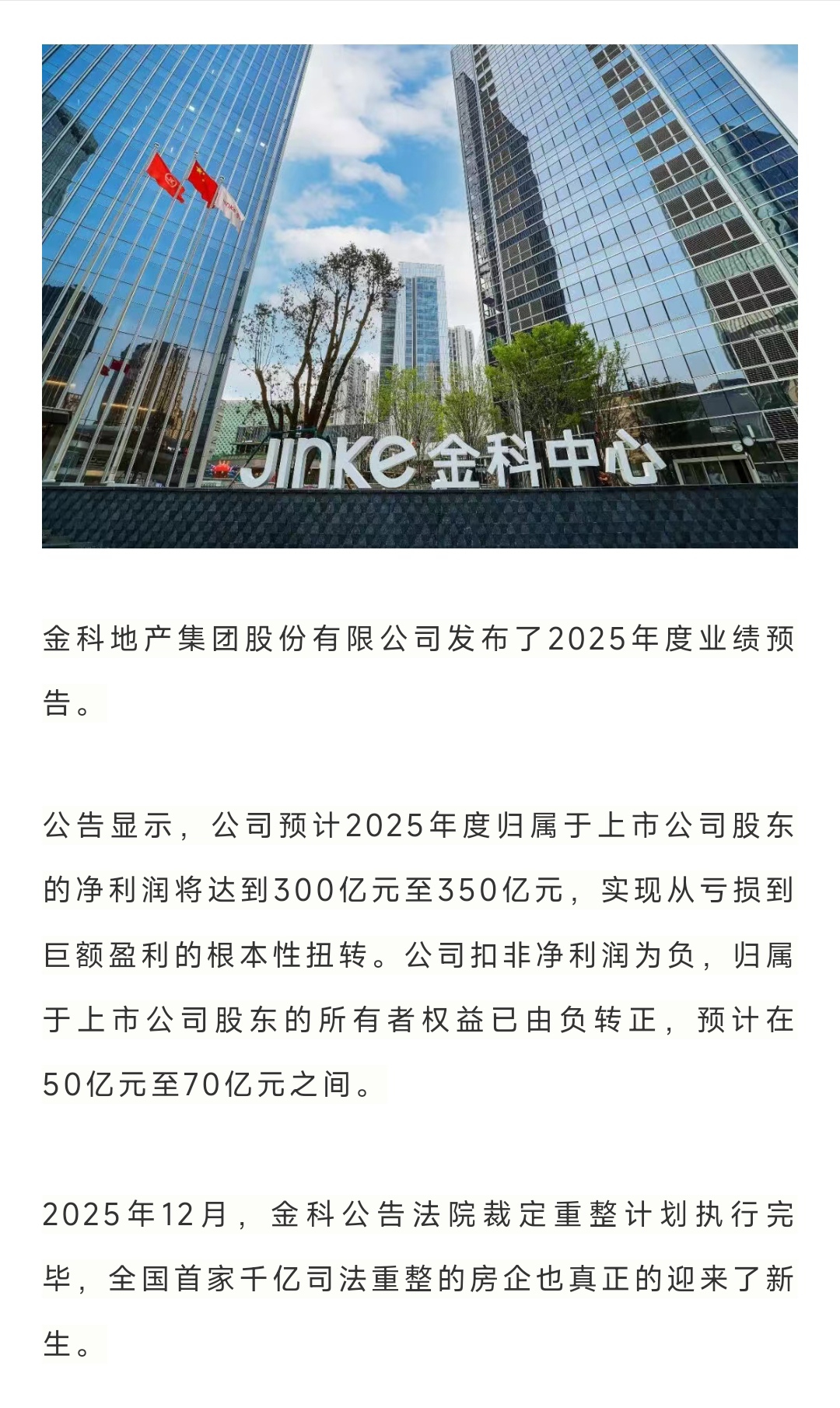 焕新起航|金科股份业绩预告2025年巨额盈利,开启科技不动产新篇章!
