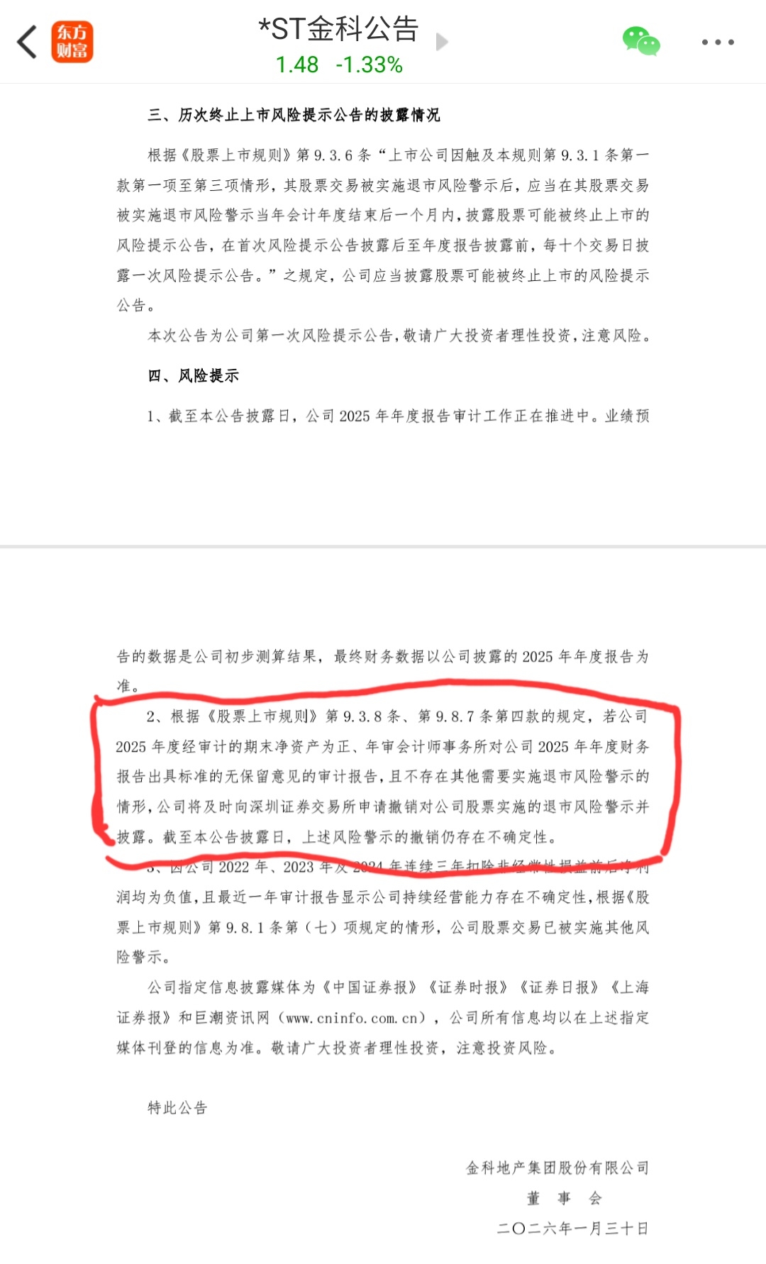 $*ST金科(SZ000656)$ 明明就是大利好,有些人杞人忧天,担心退市。他们搞错重点了,根据规定,年报没出来之前肯定要提示退市风险,年报出来就可以申请摘帽了