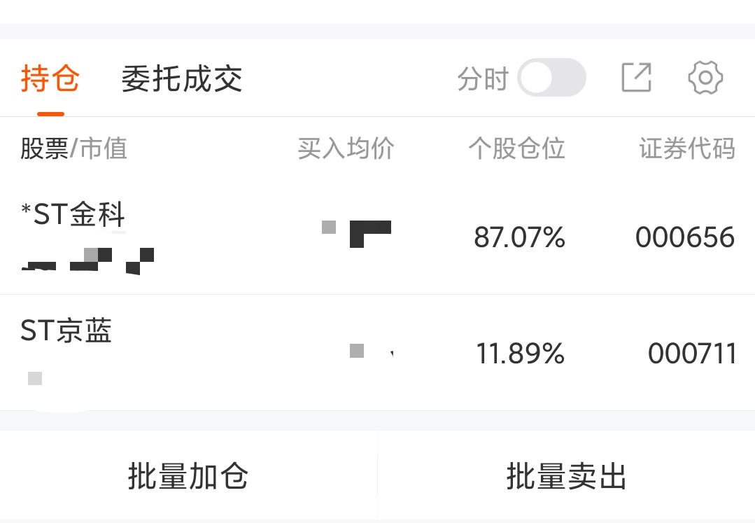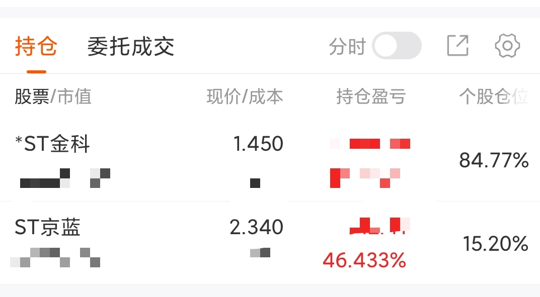 目前持仓金科持仓87%,京蓝12%机动仓打个野,剩余几千块钱准备过年用