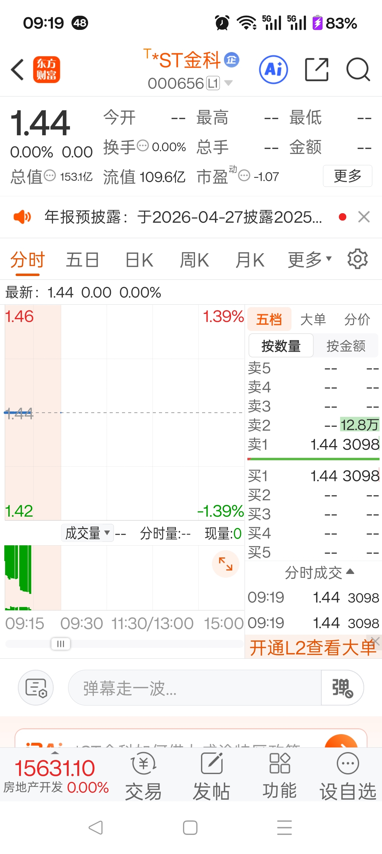 $*ST金科(SZ000656)$ 1.44卖出挂单12万手?一口吞掉