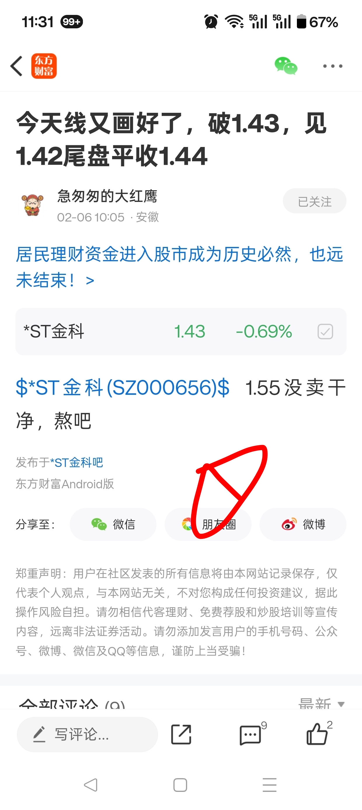 $*ST金科(SZ000656)$ 高手判断,跌穿1.43,有这个可能。协鑫集成,昨天分析了多少遍,今天这么好的买入机会,你不买?非要买金科吗?现在后悔了吧?1.43是不是想了割肉了?