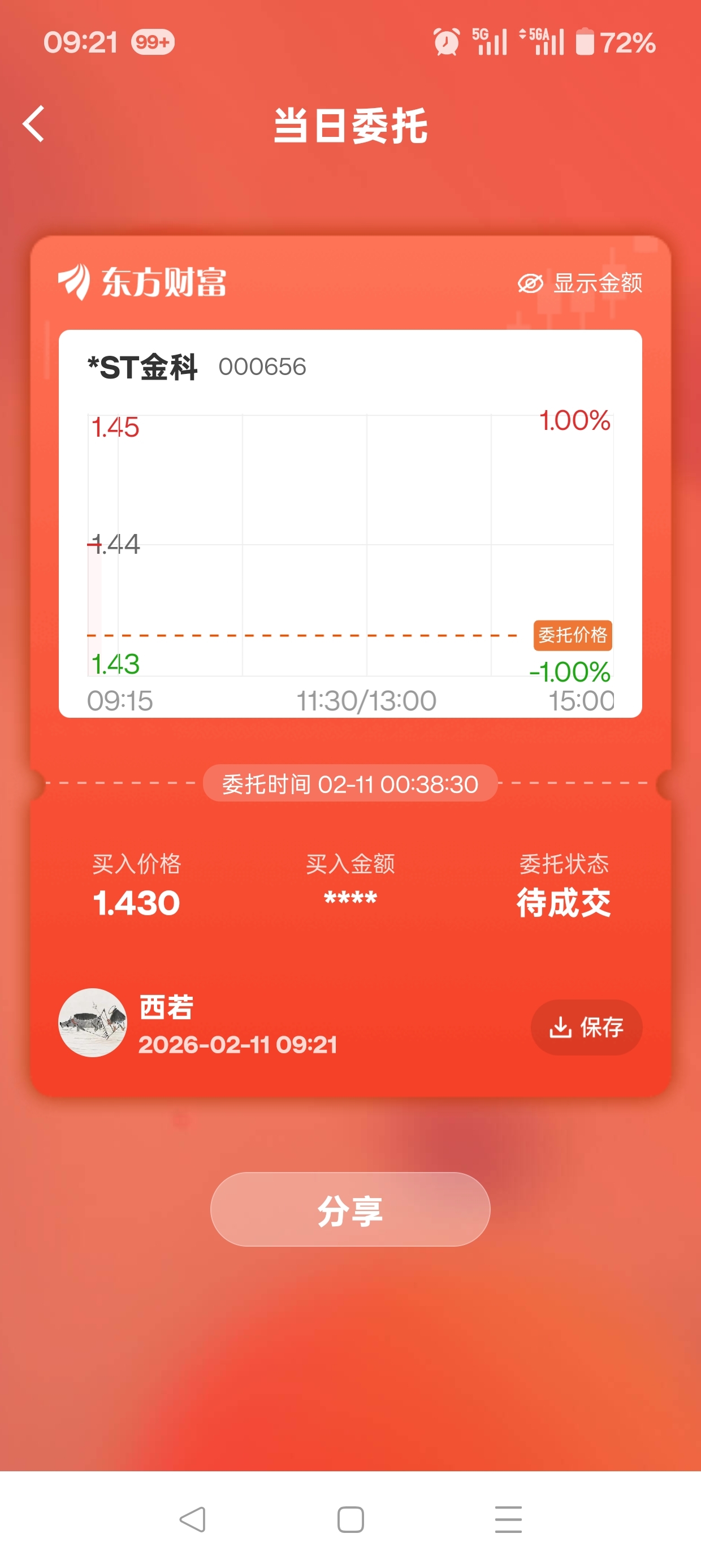$*ST金科(SZ000656)$ 买入1.43