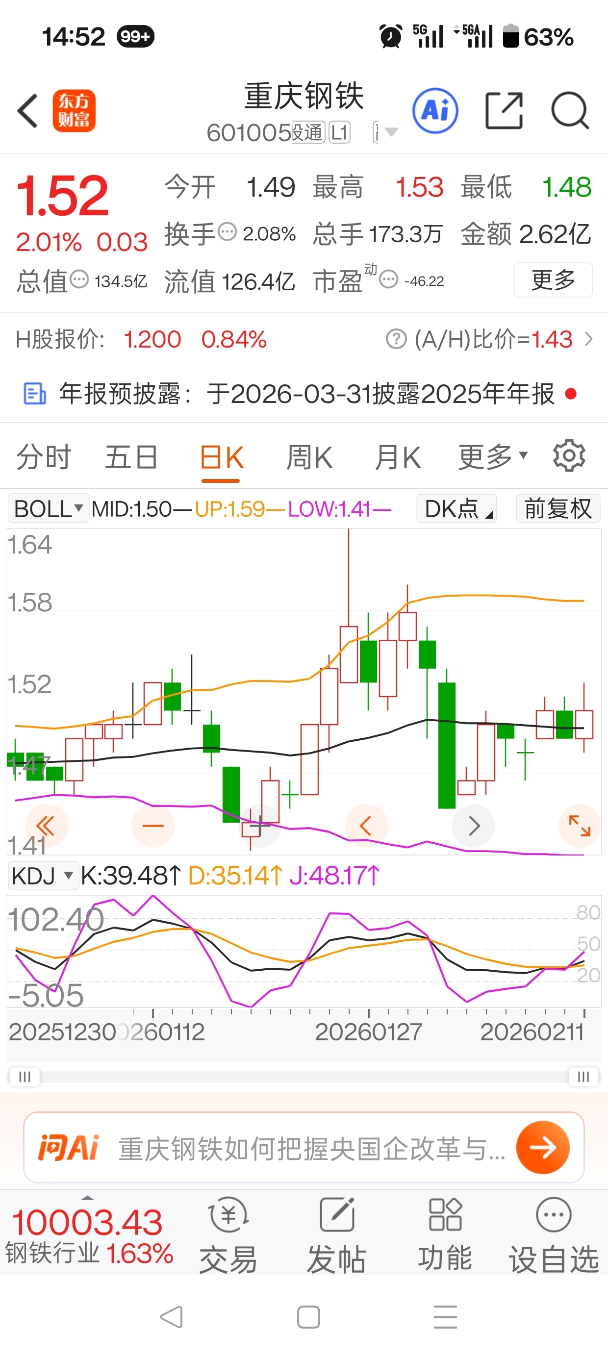 $*ST金科(SZ000656)$ 为啥不买重庆钢铁。1.55卖出金科,欢重庆钢铁多好的公司机会啊。