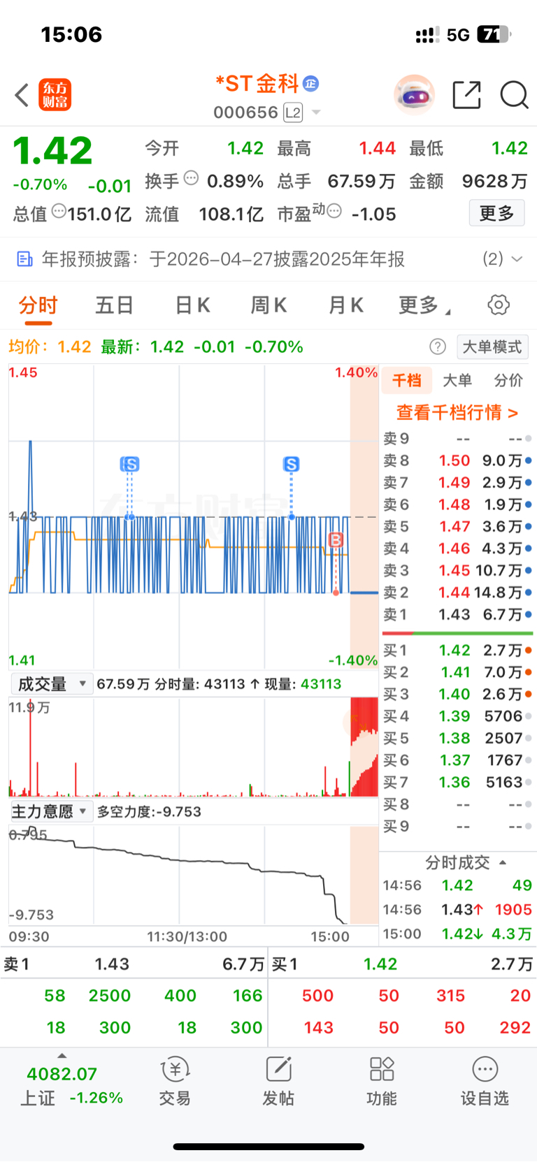 1.43卖出700多手,1.42接回一半。做T耗着吧,等年后继续抄底接回!1.4