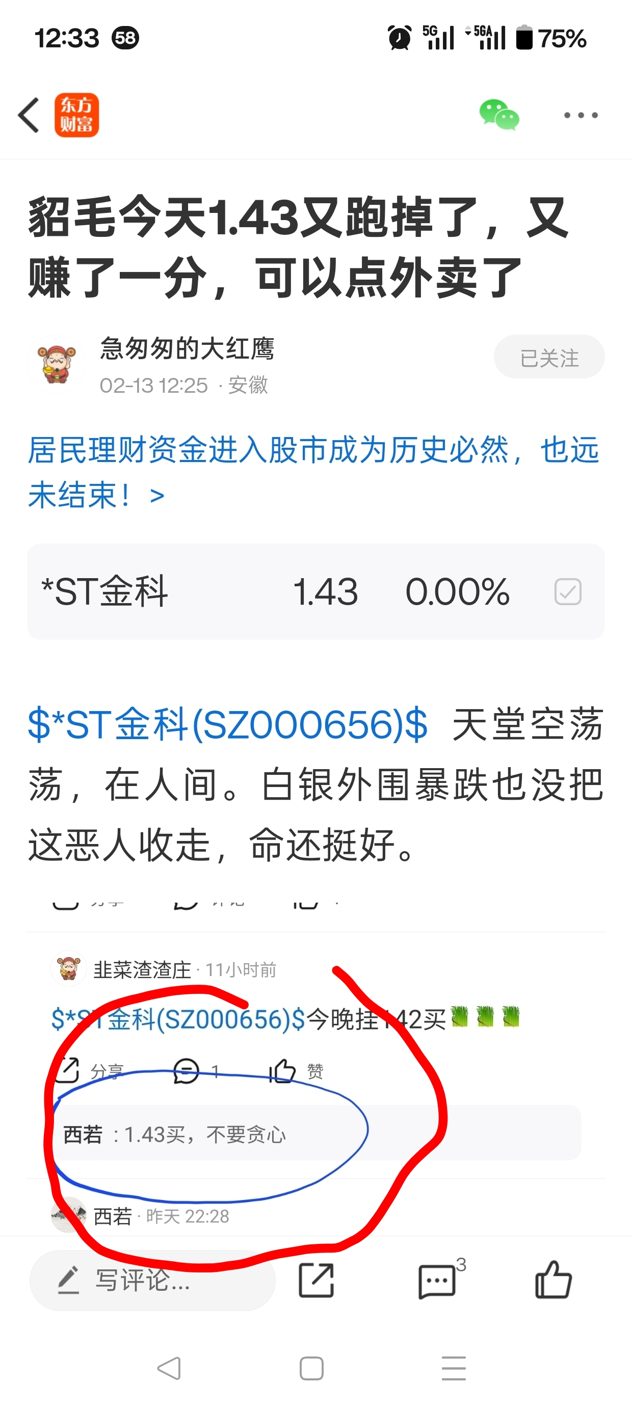 $*ST金科(SZ000656)$ 1.43卖出,有人做了示范了,有啥不对?