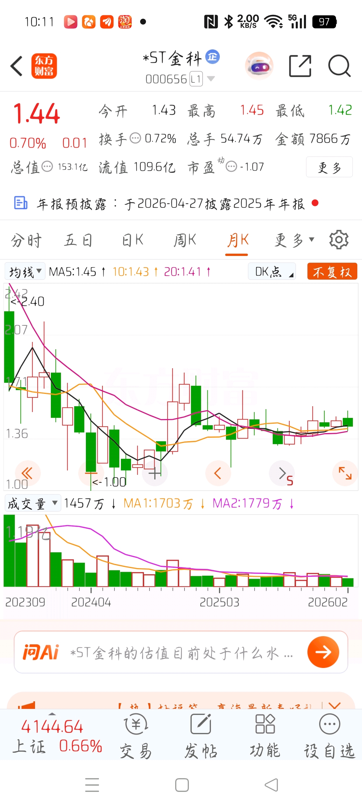 $*ST金科(SZ000656)$ 大W底形成了吗?