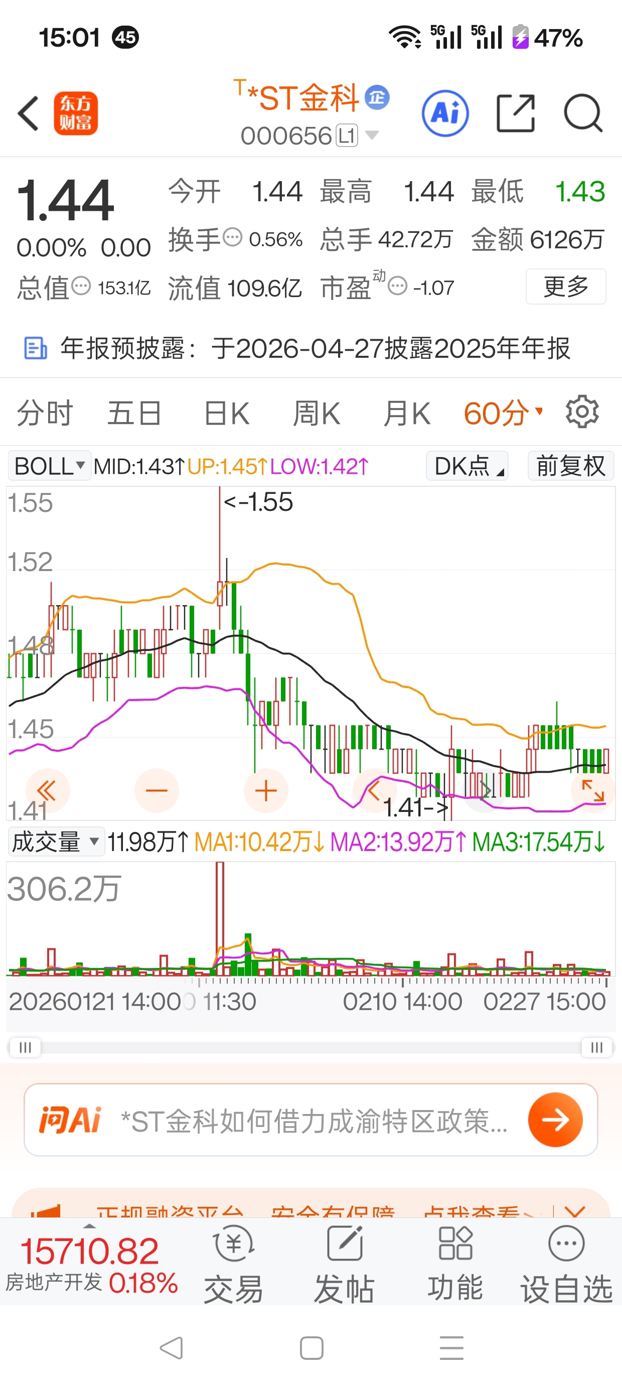 $*ST金科(SZ000656)$ 布林线中轨一旦走平,股价即将上涨。买入金科明天是好机会。