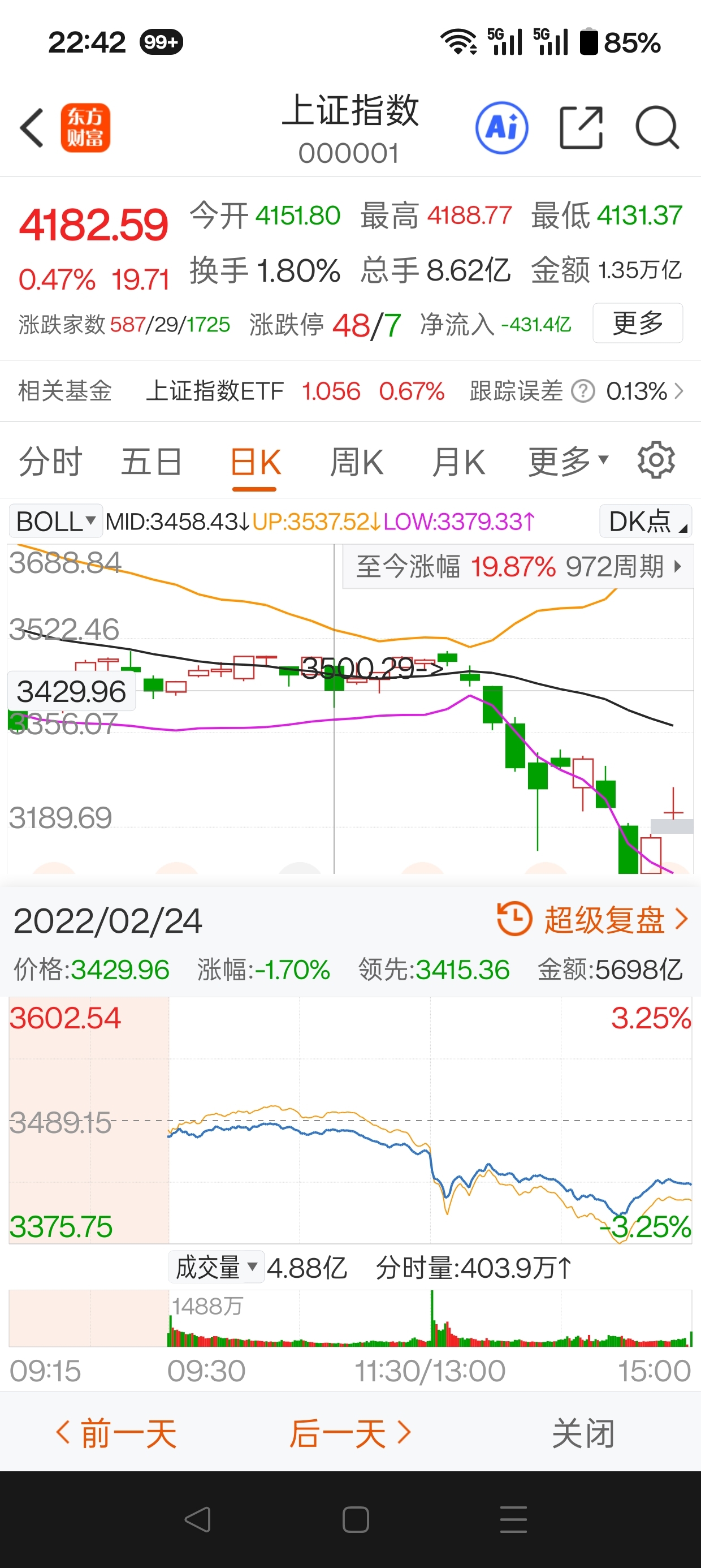 $*ST金科(SZ000656)$ 今天金科1.41成交了32万手,明天跌穿1.41没有问题。1.35那里还有个缺口,补完了会大幅度反弹。明天还不会到。耐心等。要特别提醒大家的是,战争就是利空,利空总要发酵。2022年2月24日前后,大盘走势大家可以对照的看一看。当天分时图,中午10点55分,战争爆发。