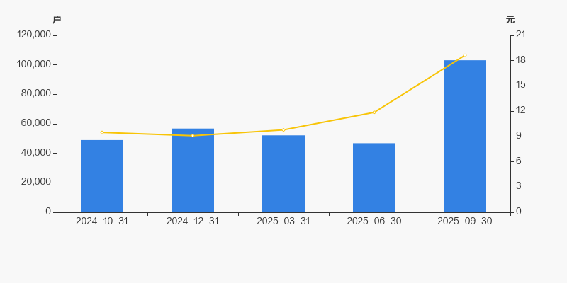 2024年10月31日至今,公司股东户数成倍增长,区间涨幅达110.45%。2024年10月31日至2025年9月30日区间股价上涨96.47%。