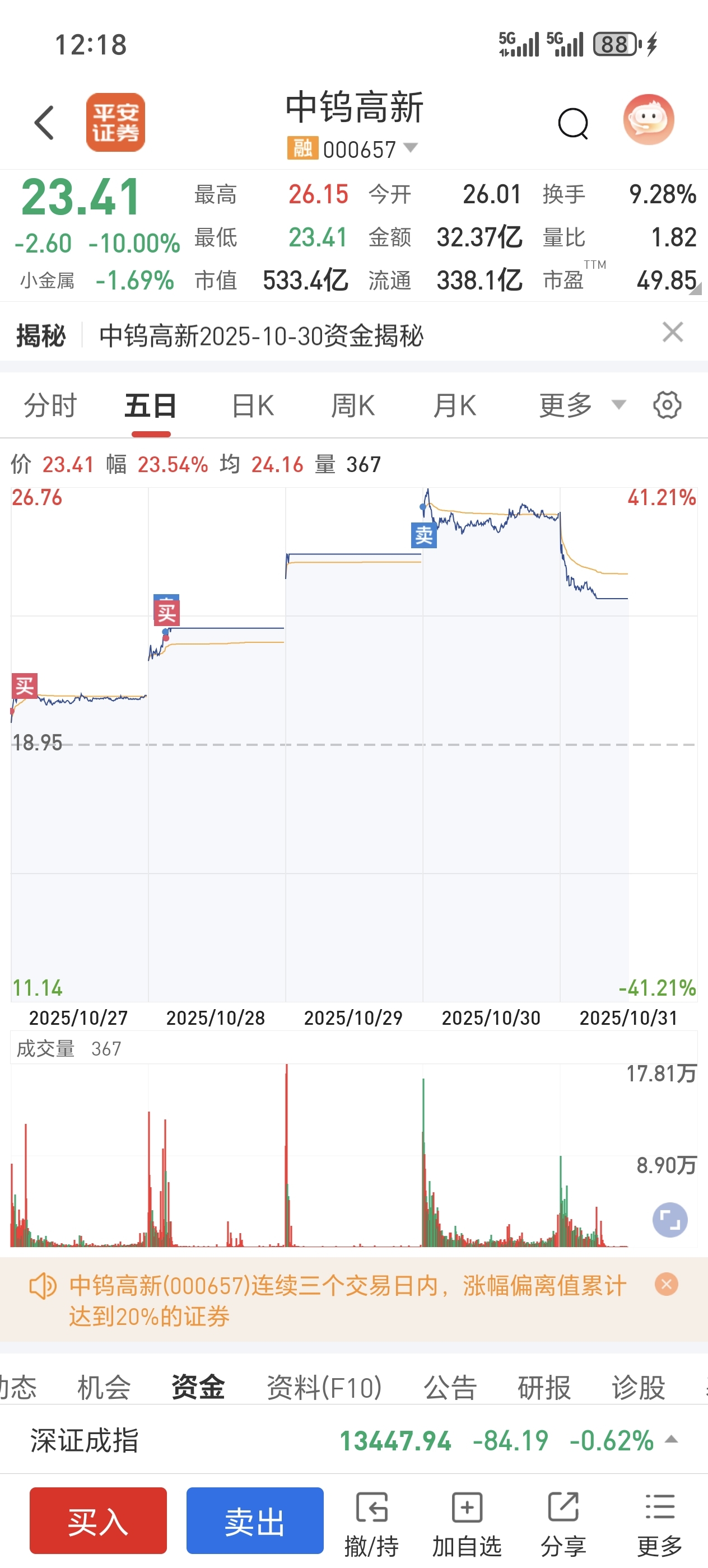 $中钨高新(SZ000657)$ 还好昨天没加仓
