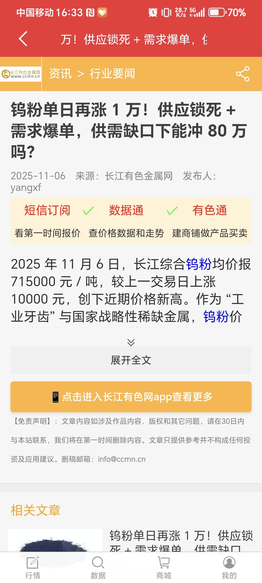 $中钨高新(SZ000657)$ 钨又涨价了还是暴涨。。。。
