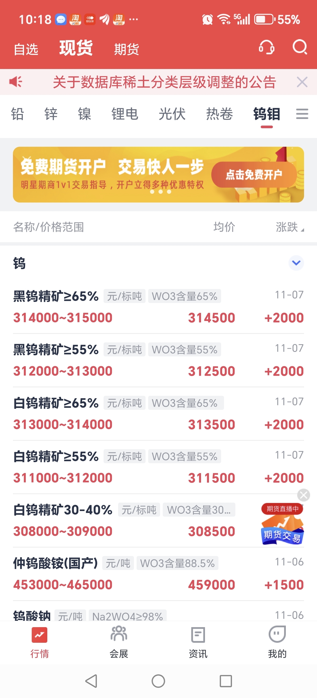 今天钨继续大涨