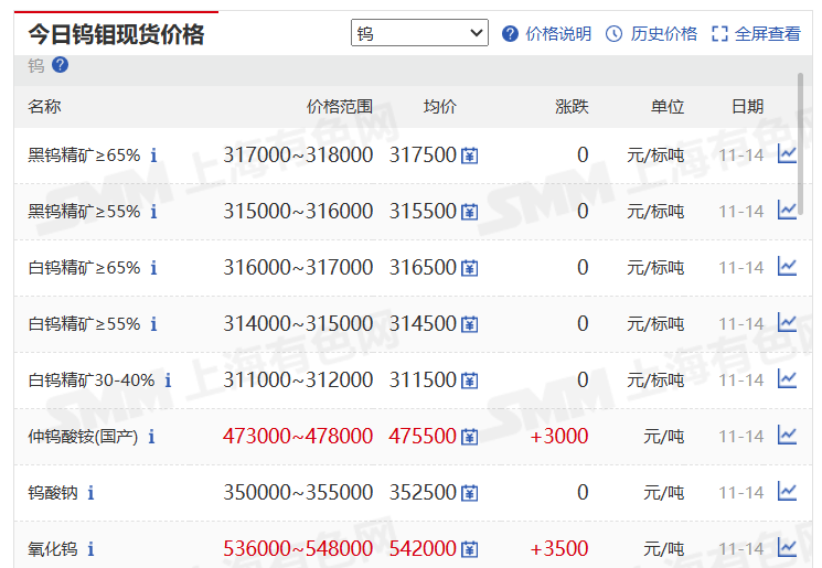 今天钨价
