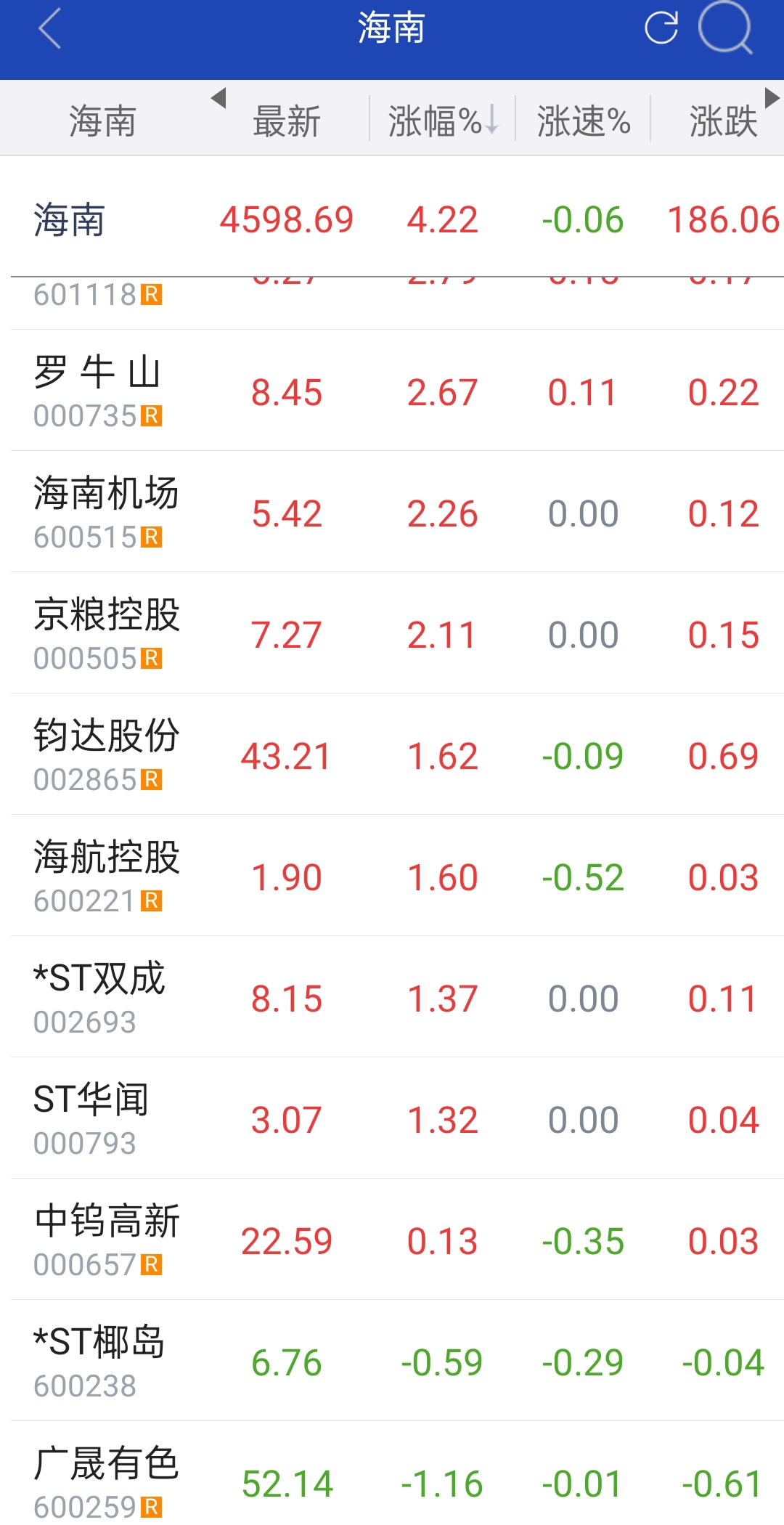 海南板块大涨,中钨高新涨幅排名倒数第三